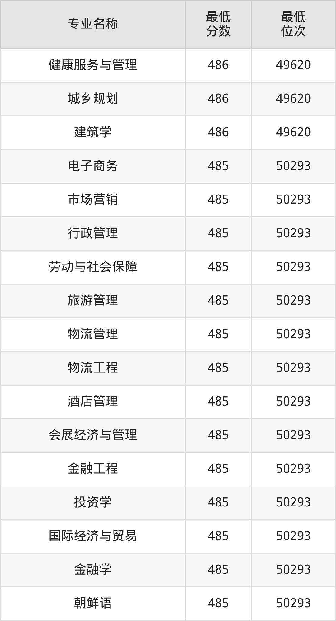| 四川 | 文科本科二批 | —— | 495/491/497 |