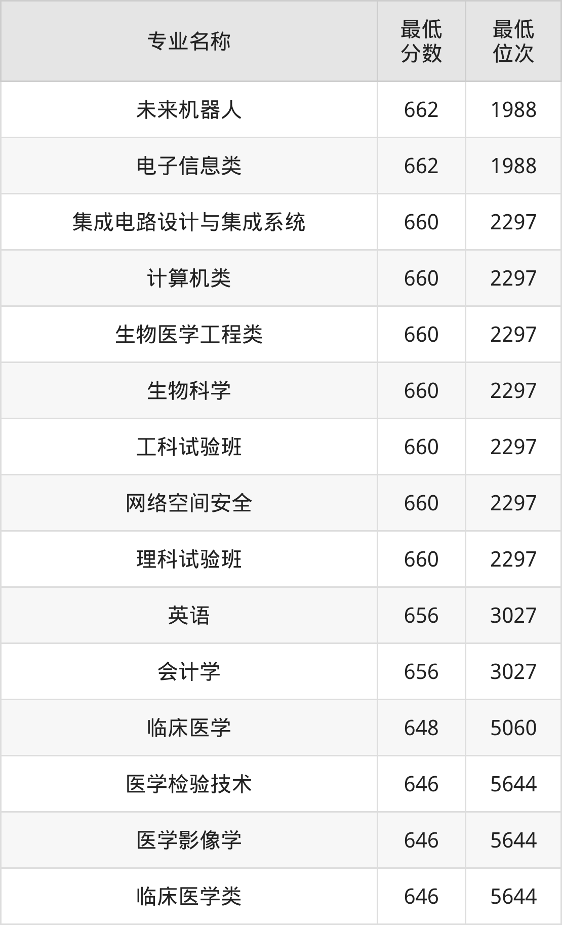 | 四川 | 理科本科一批 | —— | 665/660/647 |