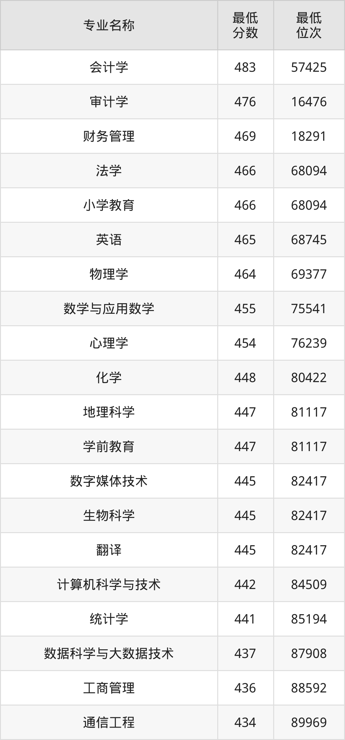 | 云南 | 理科二本 | —— | 450/433/462 |