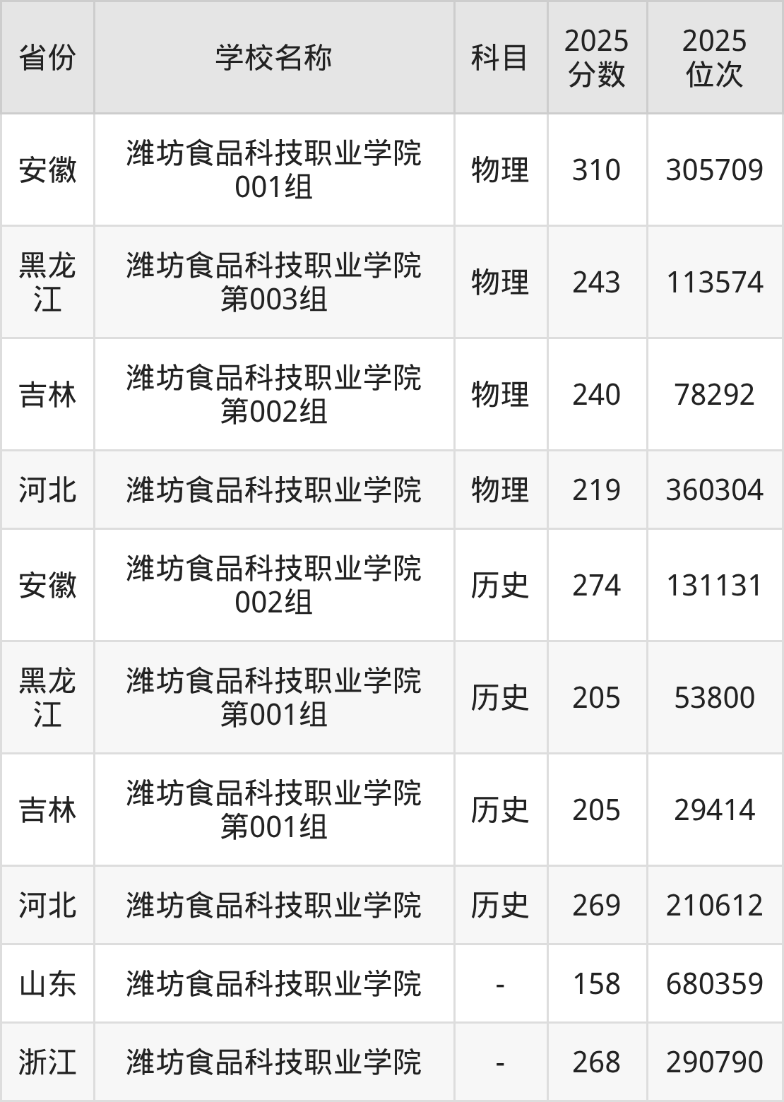 一、2025潍坊食品科技职业学院录取分数线