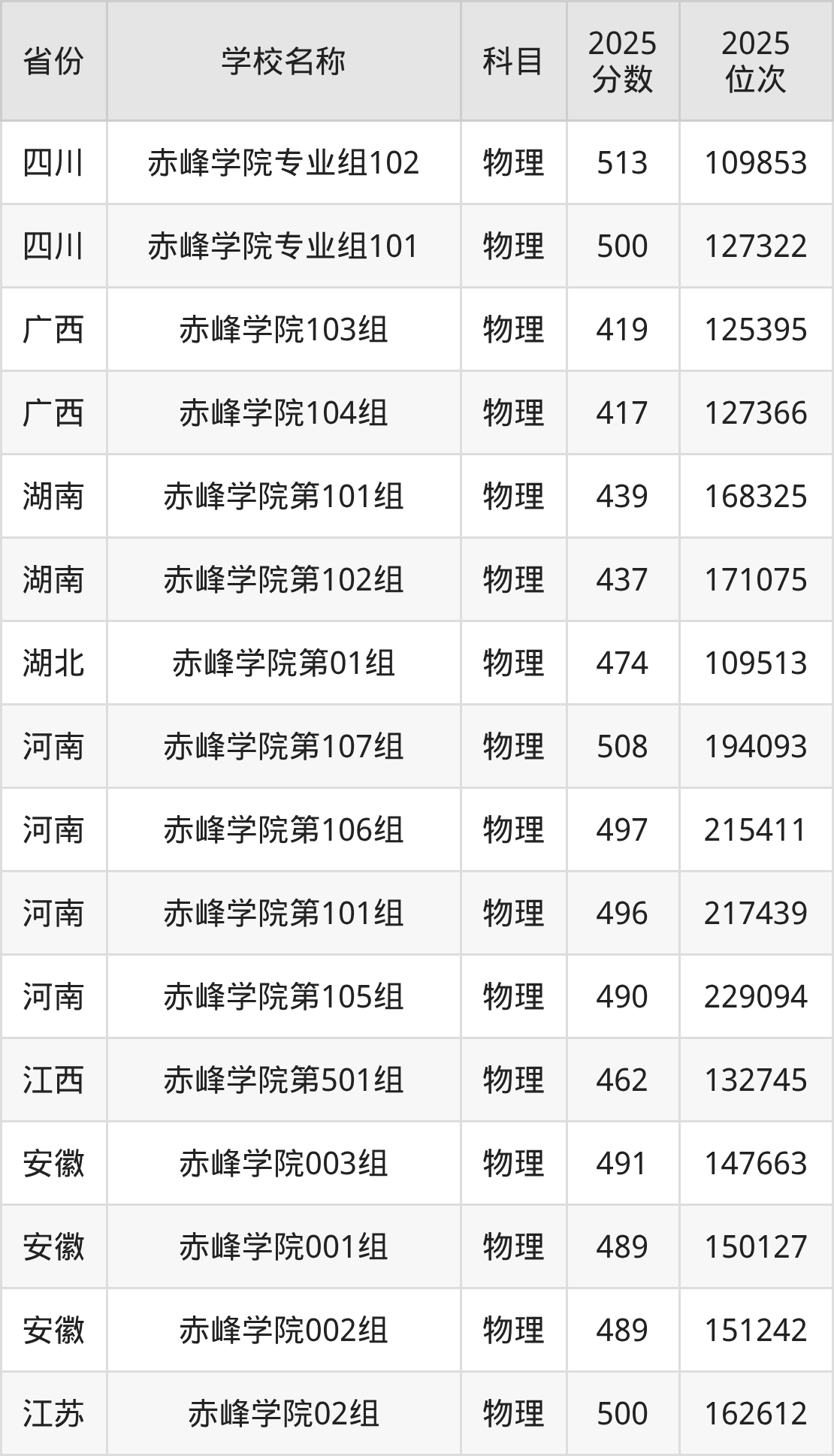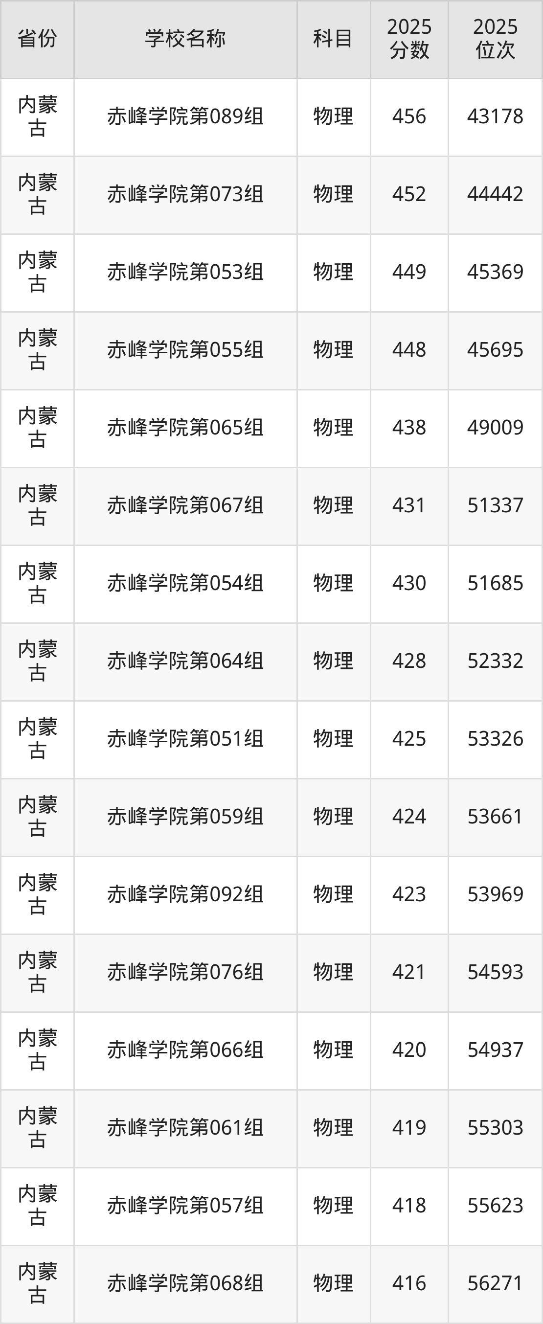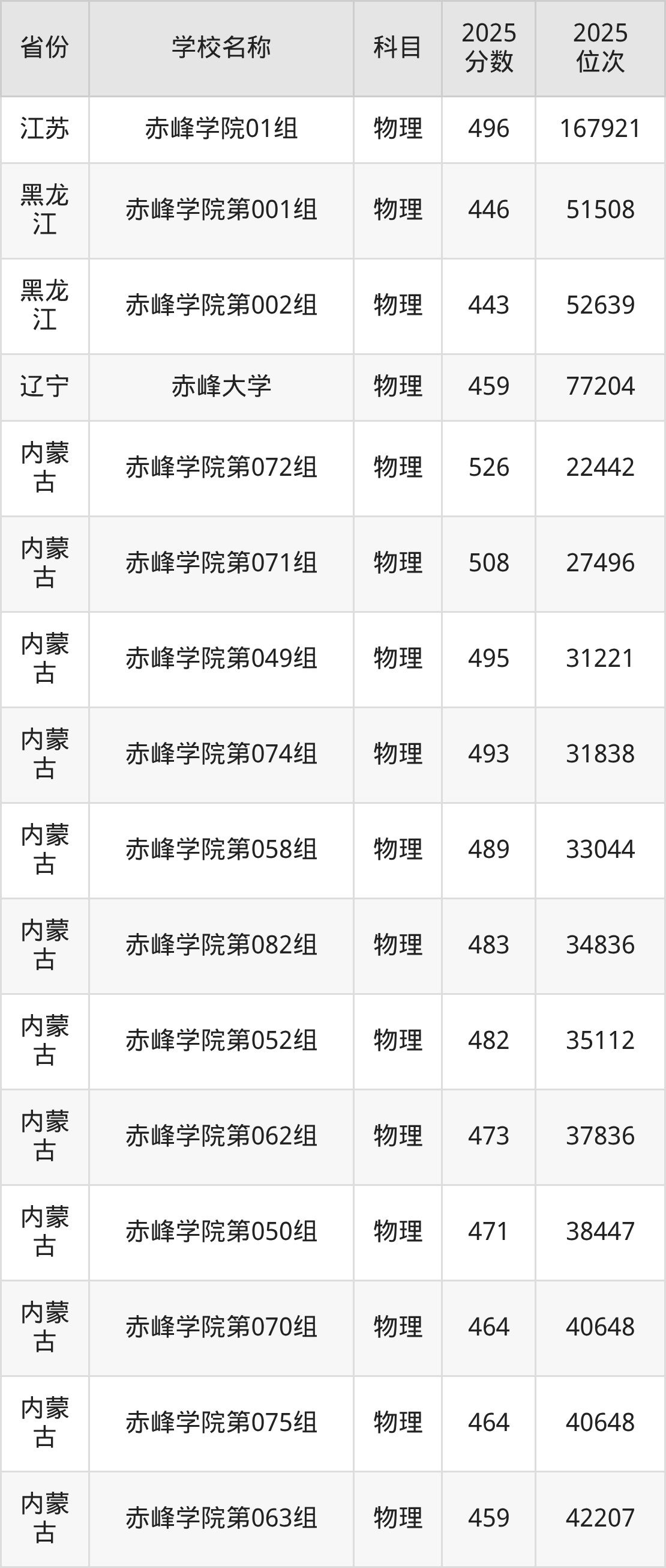 赤峰大学2025年有43个专业组面向内蒙古自治区内首选了物理科目的考生招生: