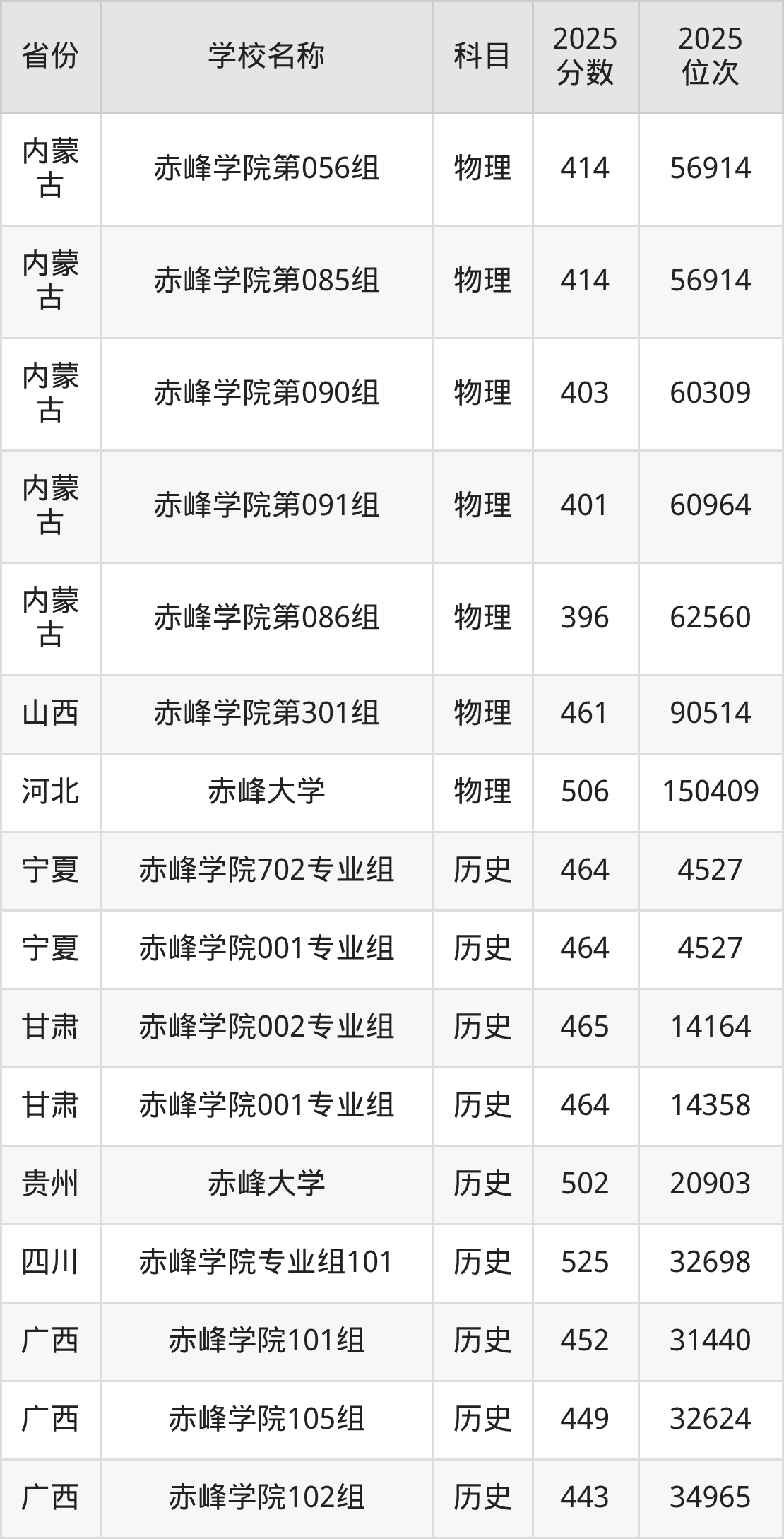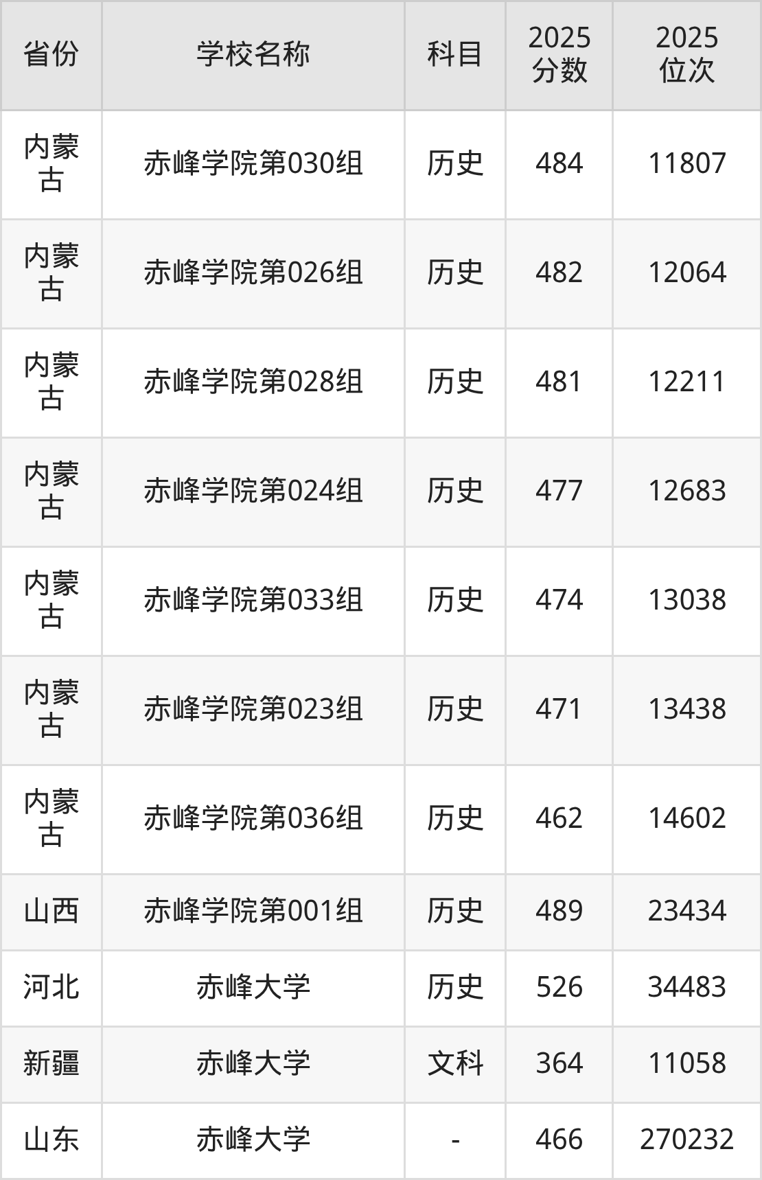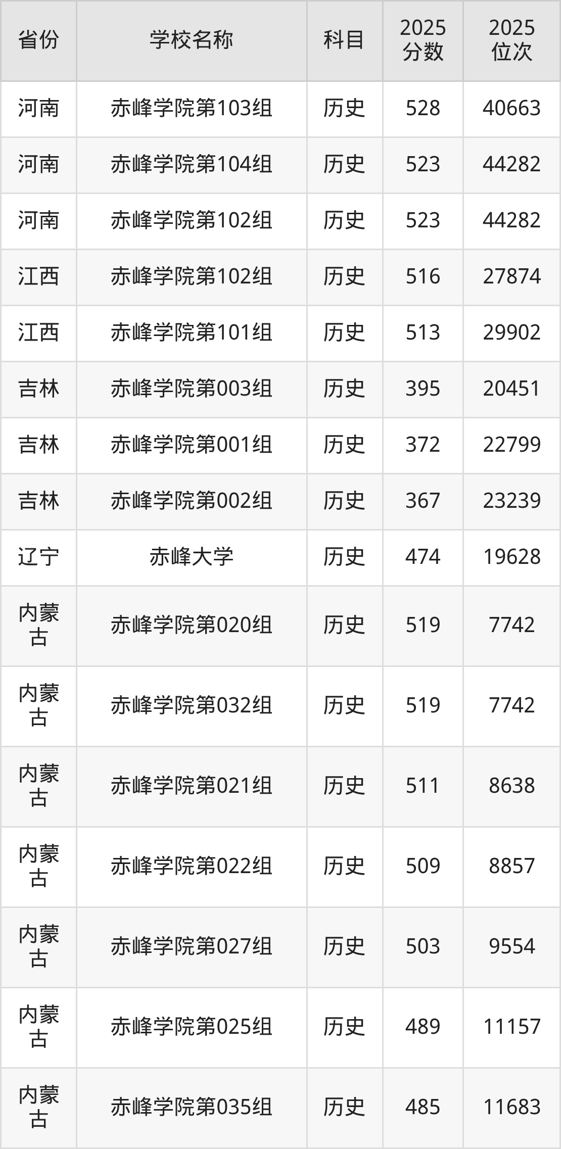 赤峰大学2025年有14个专业组面向内蒙古自治区内首选了历史科目的考生招生:
