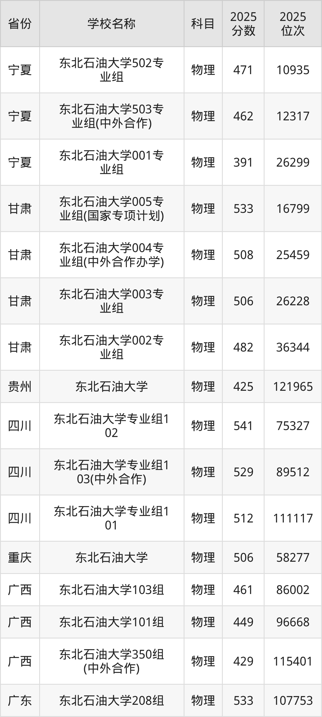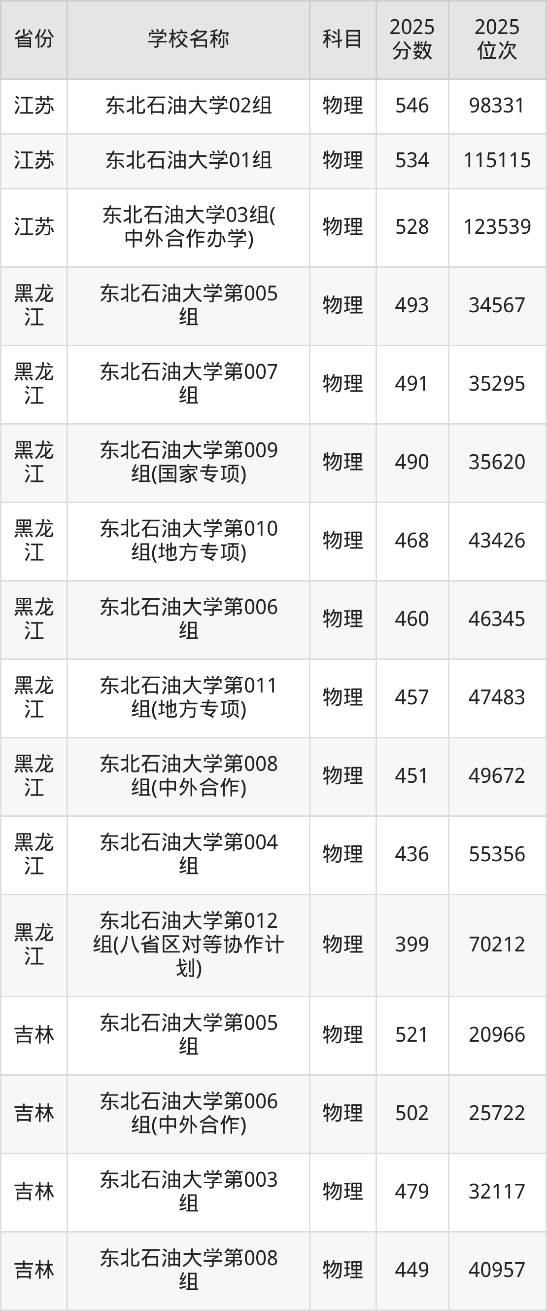 东北石油大学2025年有9个专业组面向黑龙江省内首选了物理科目的考生招生: