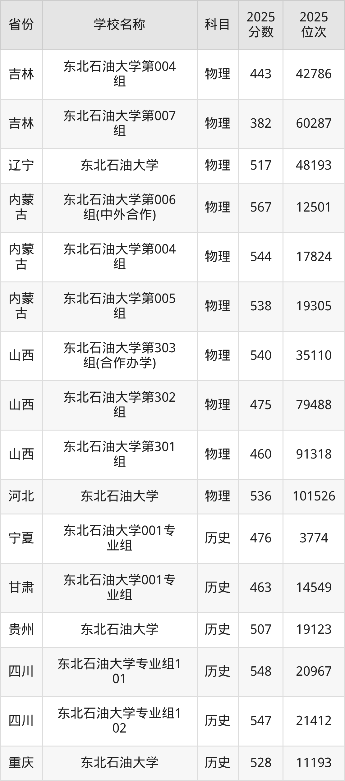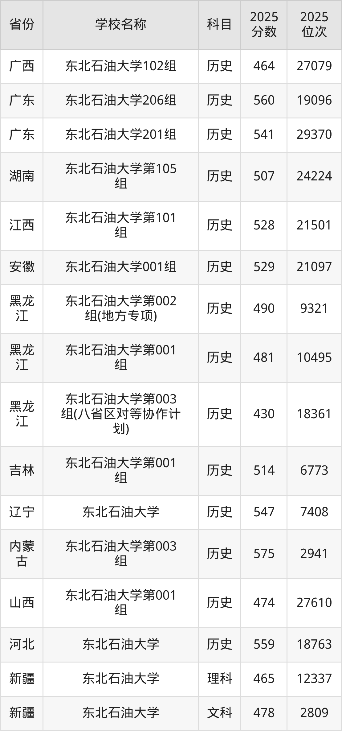 东北石油大学2025年有3个专业组面向黑龙江省内首选了历史科目的考生招生:
