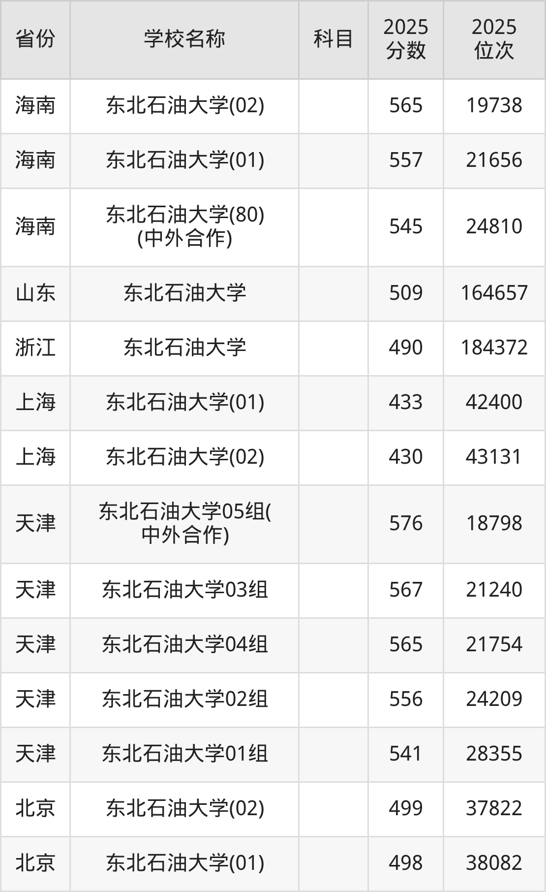 2025年东北石油大学在全国各省本科的最低录取分数线在382~576分之间。天津高考生最低576分能上东北石油大学、内蒙古物理类高考生最低567分能上东北石油大学……下文将展示东北石油大学在全国26个高考省份中的本科最低投档录取分汇总!