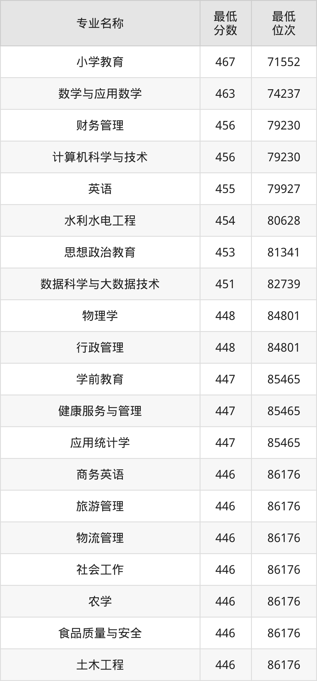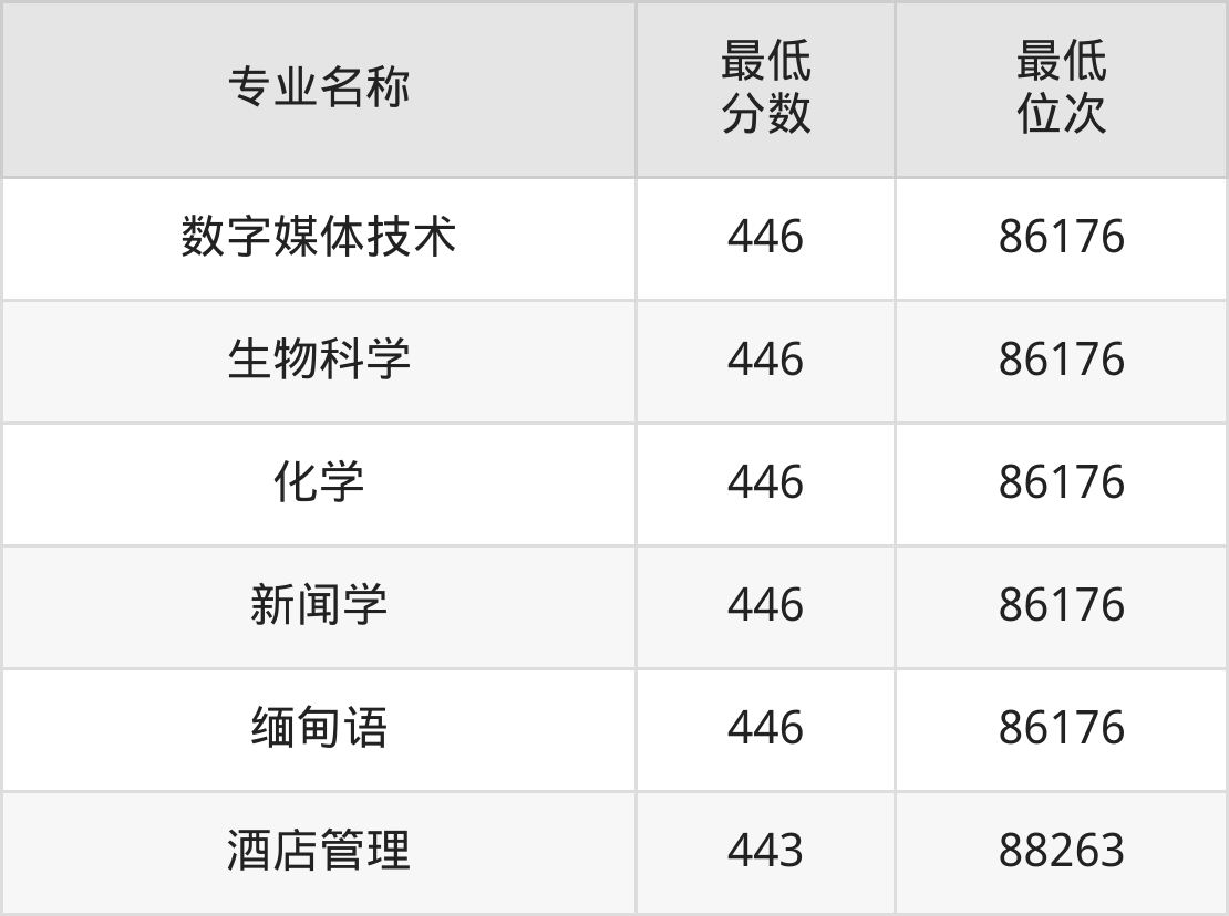 | 云南 | 理科二本 | —— | 446/427/448 |