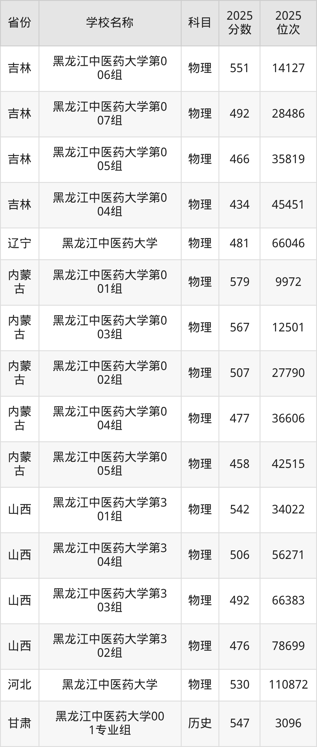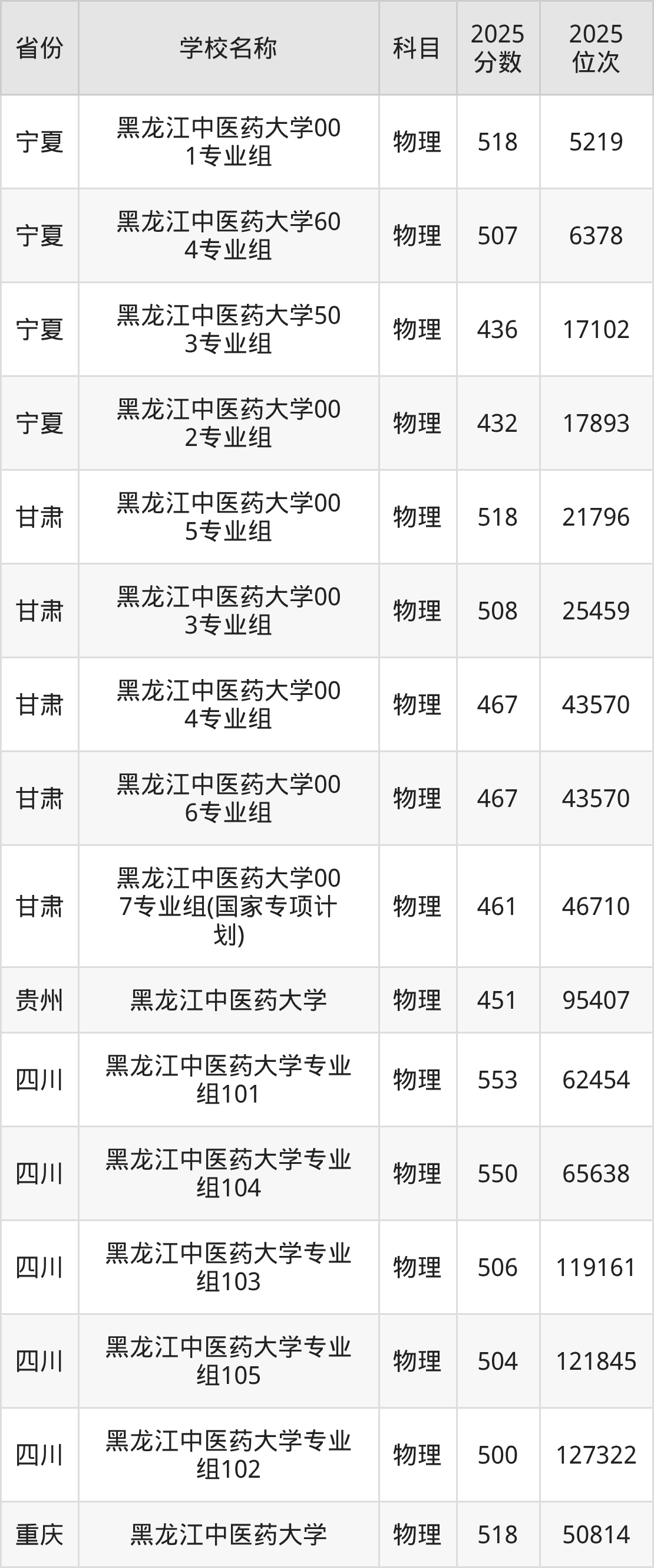 黑龙江中医药大学2025年有10个专业组面向黑龙江省内首选了物理科目的考生招生: