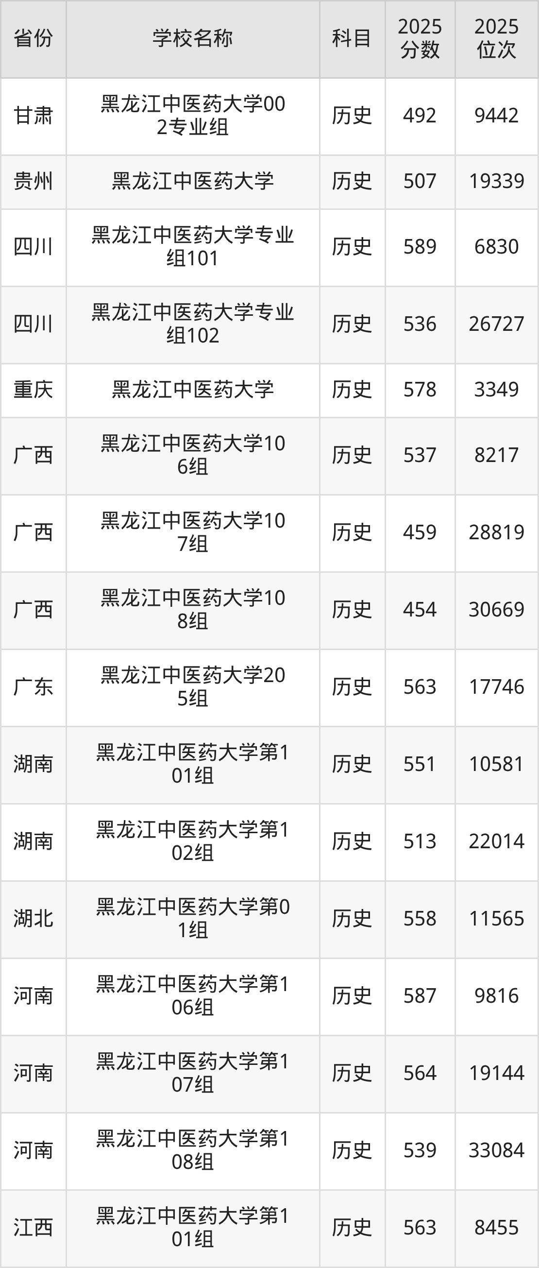 黑龙江中医药大学2025年有4个专业组面向黑龙江省内首选了历史科目的考生招生: