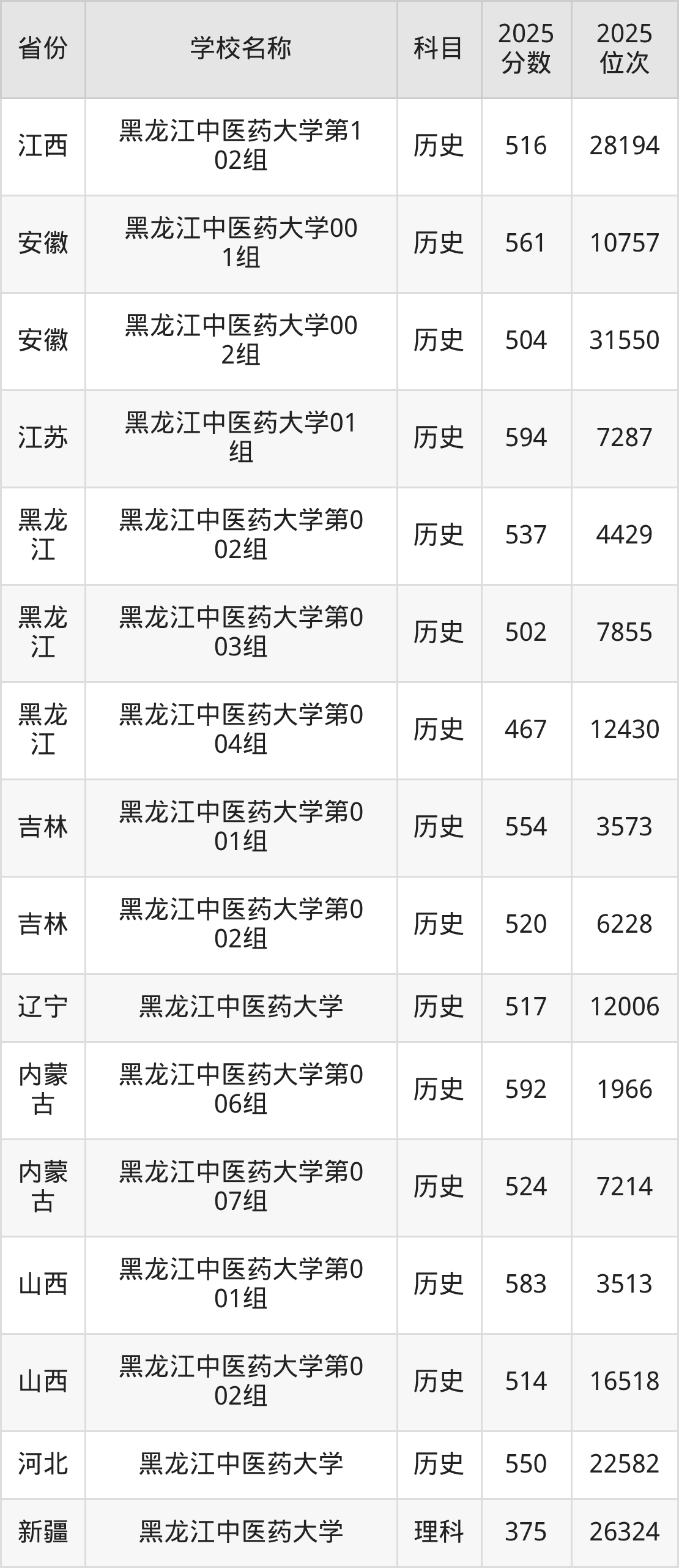 二、黑龙江中医药大学各专业录取分数线