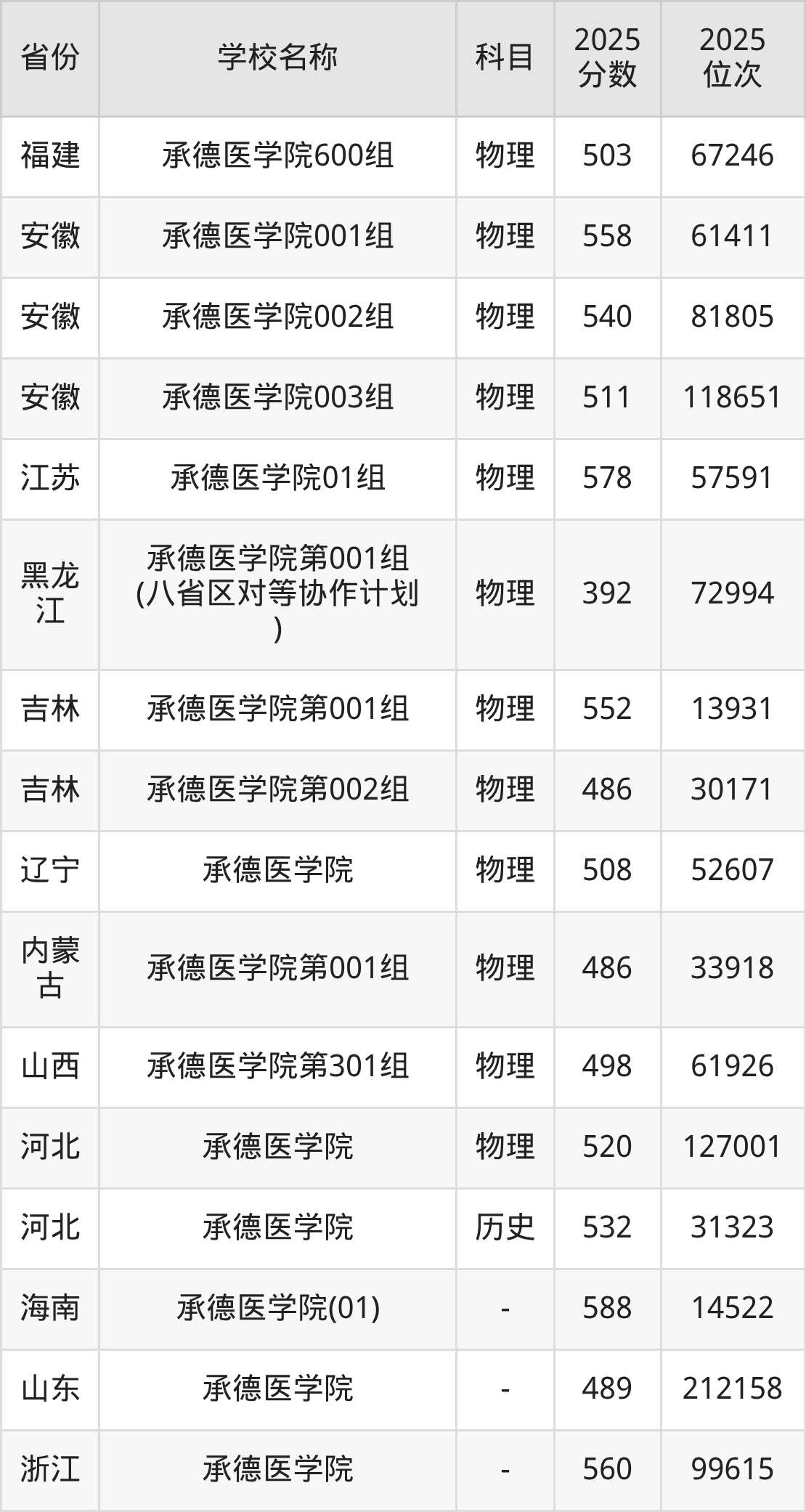 2025年承德医学院在全国各省本科的最低录取分数线在392~591分之间。河南物理类高考生最低591分能上承德医学院、海南高考生最低588分能上承德医学院……下文将展示承德医学院在全国25个高考省份中的本科最低投档录取分汇总!