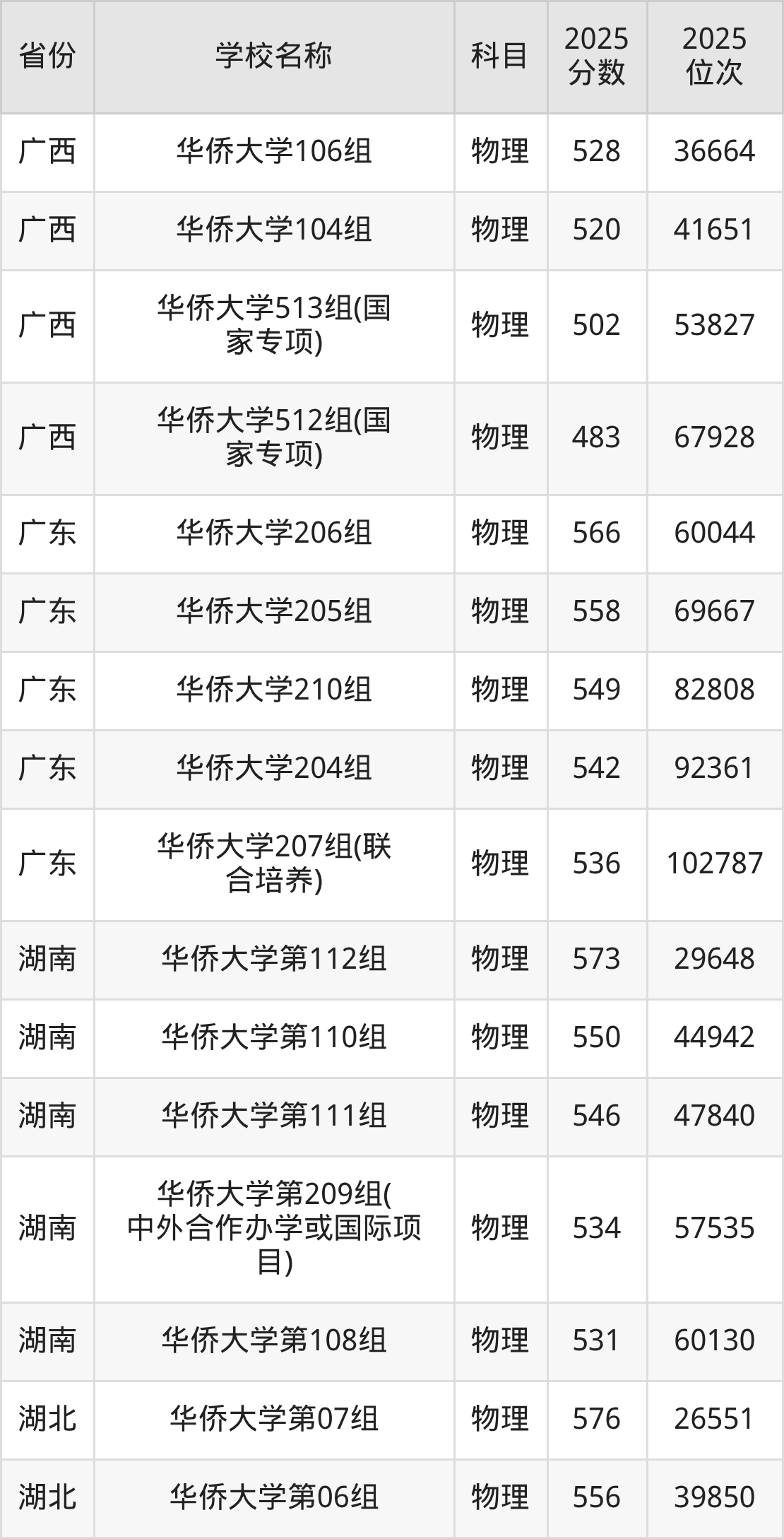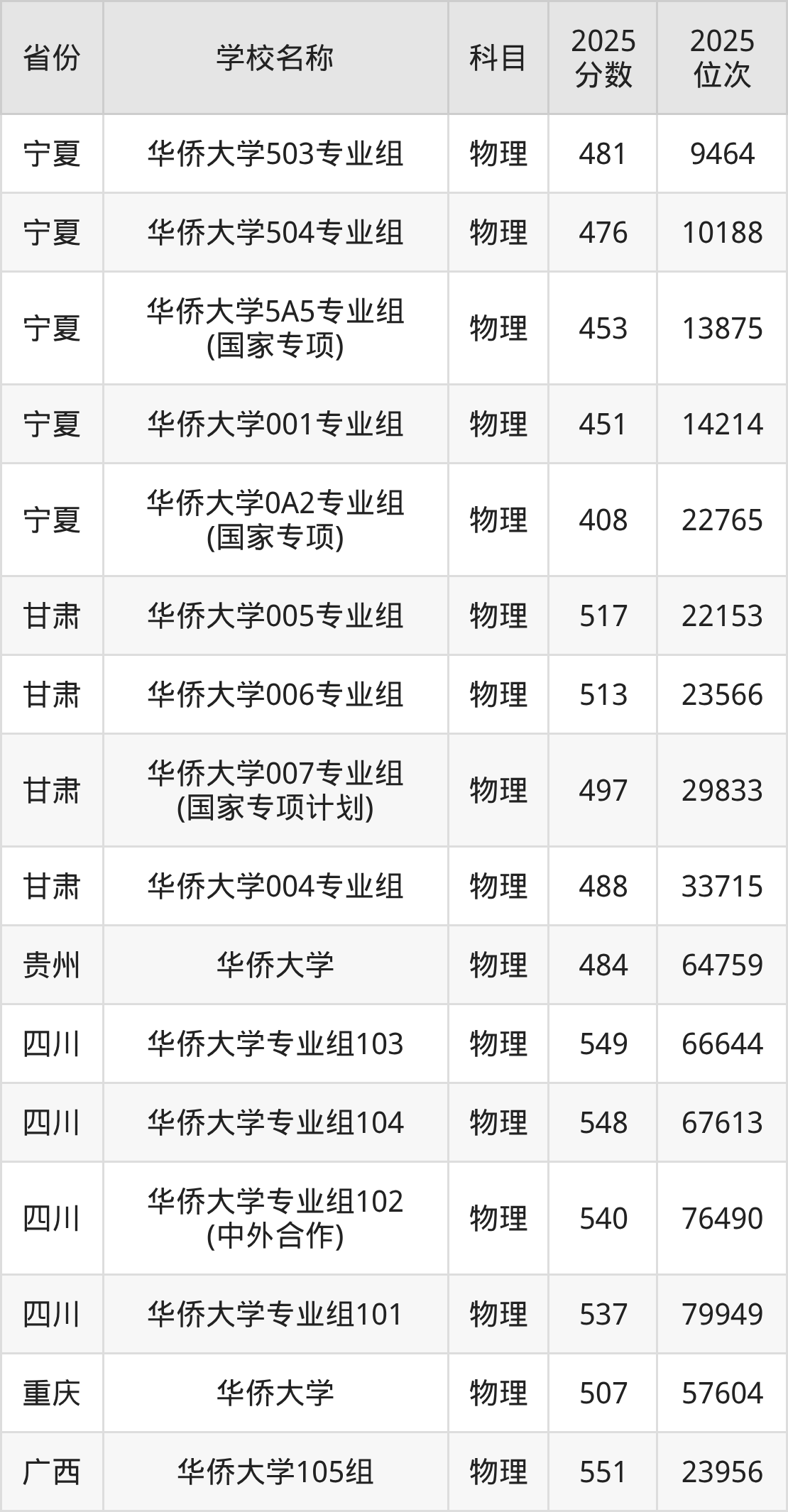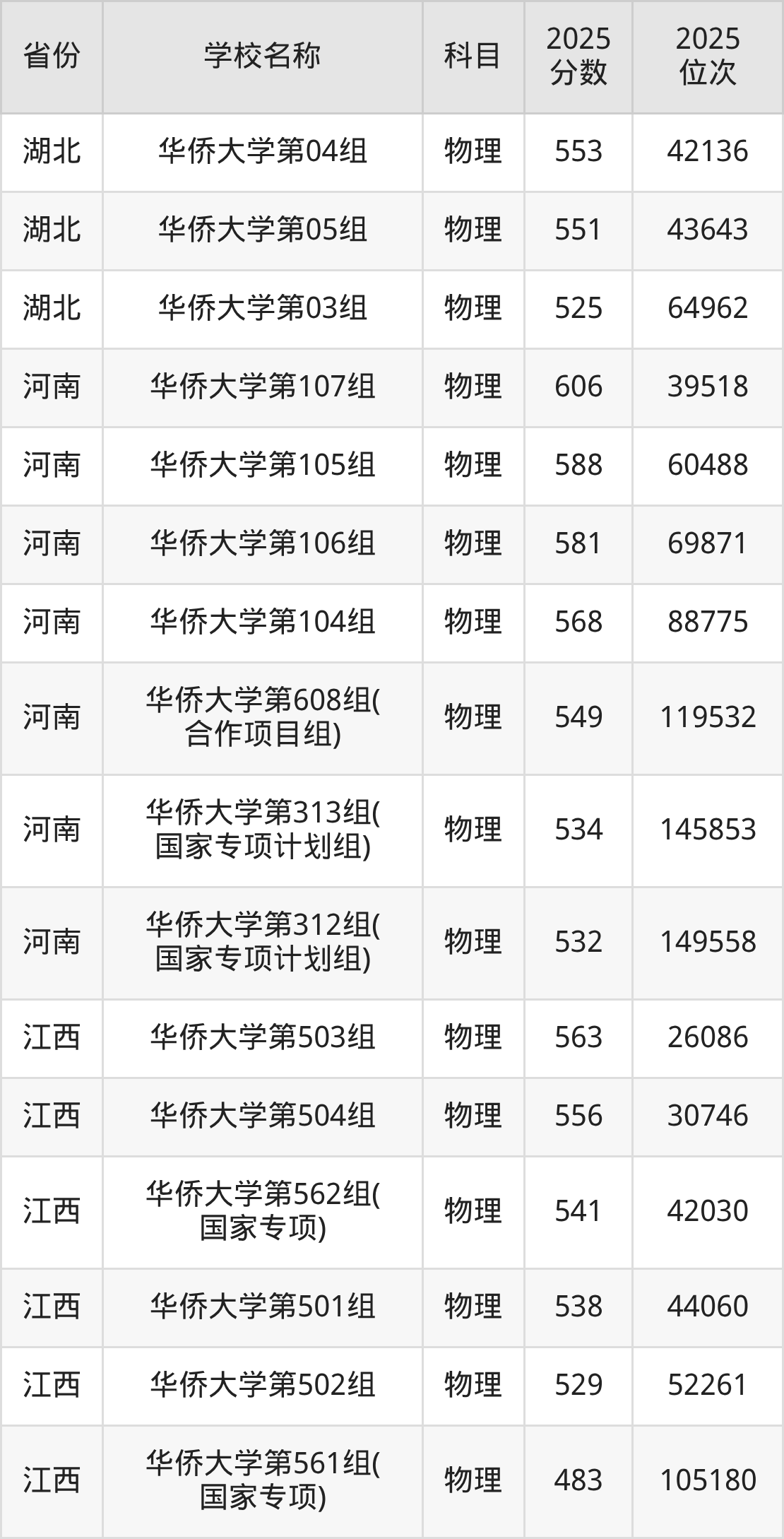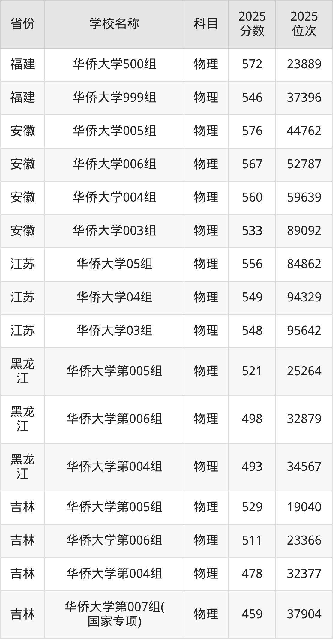 华侨大学2025年有2个专业组面向福建省内首选了物理科目的考生招生: