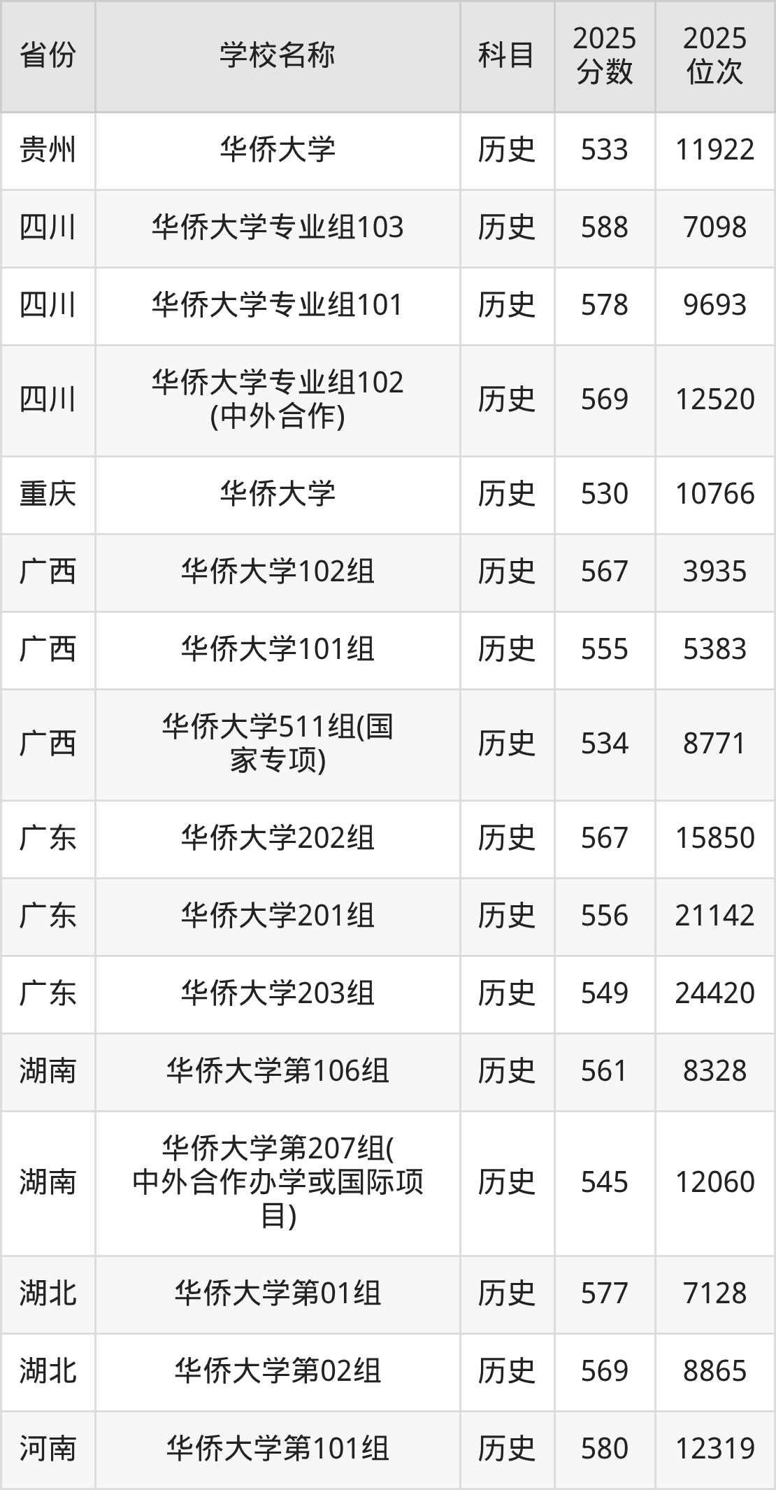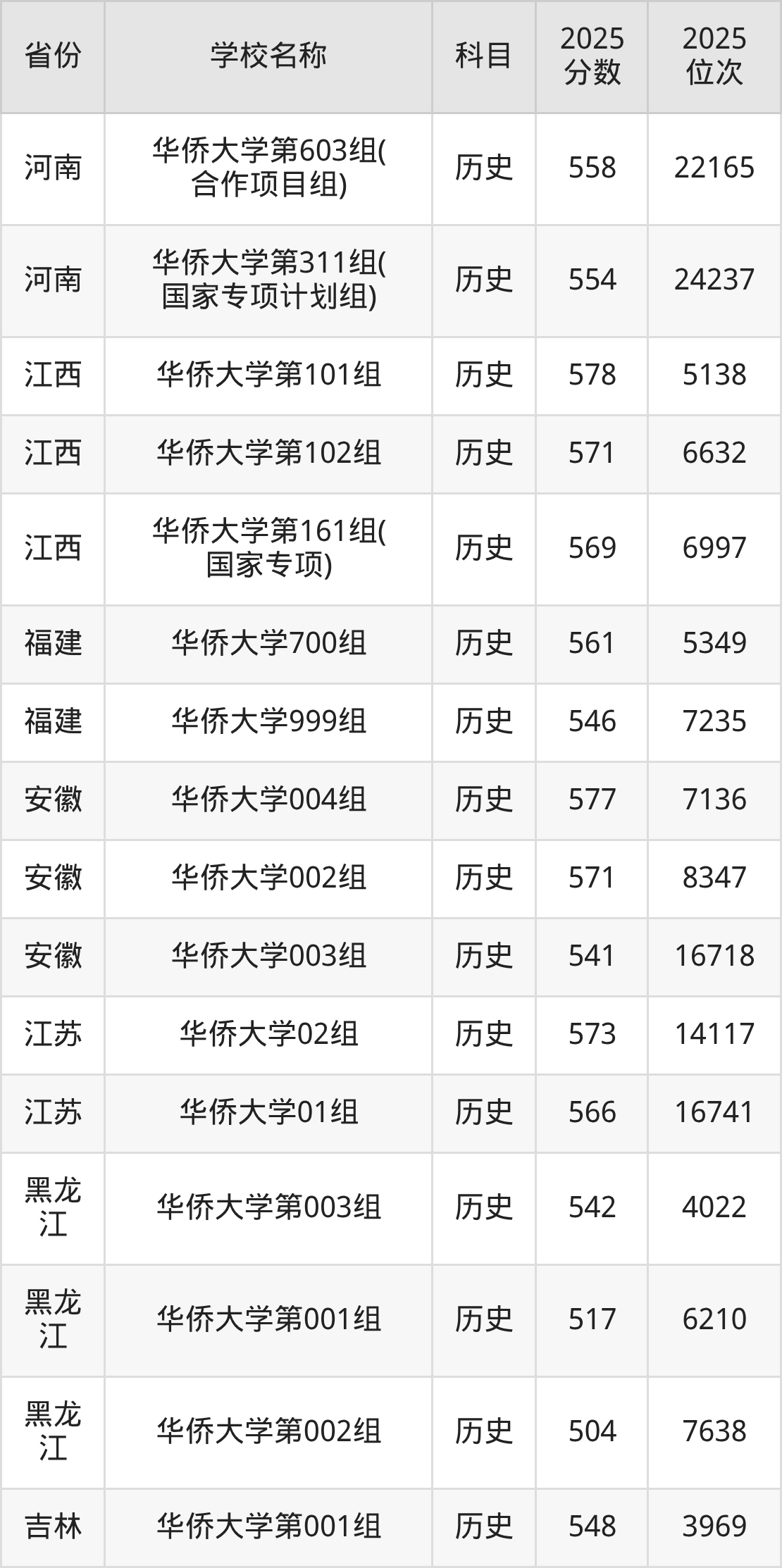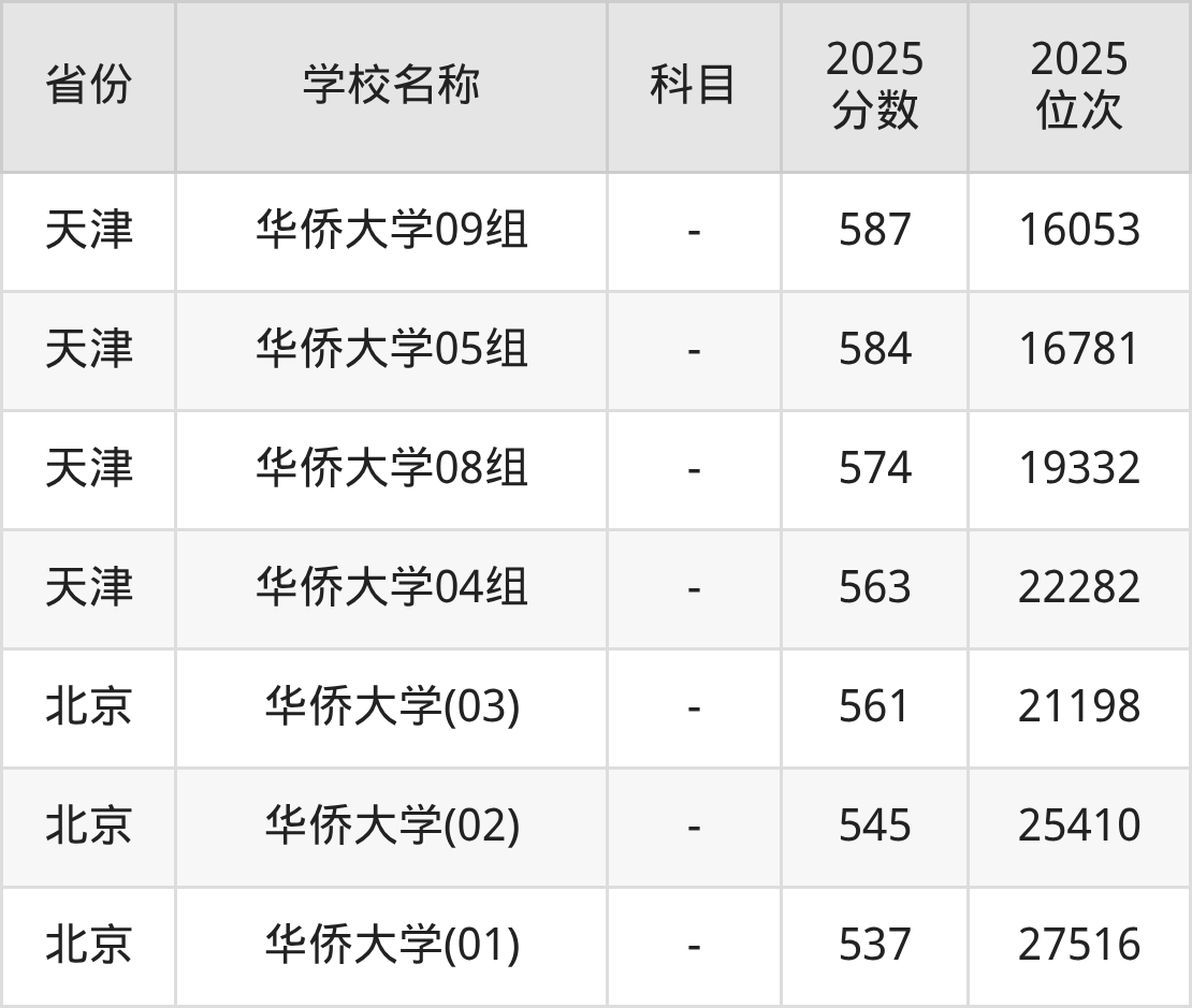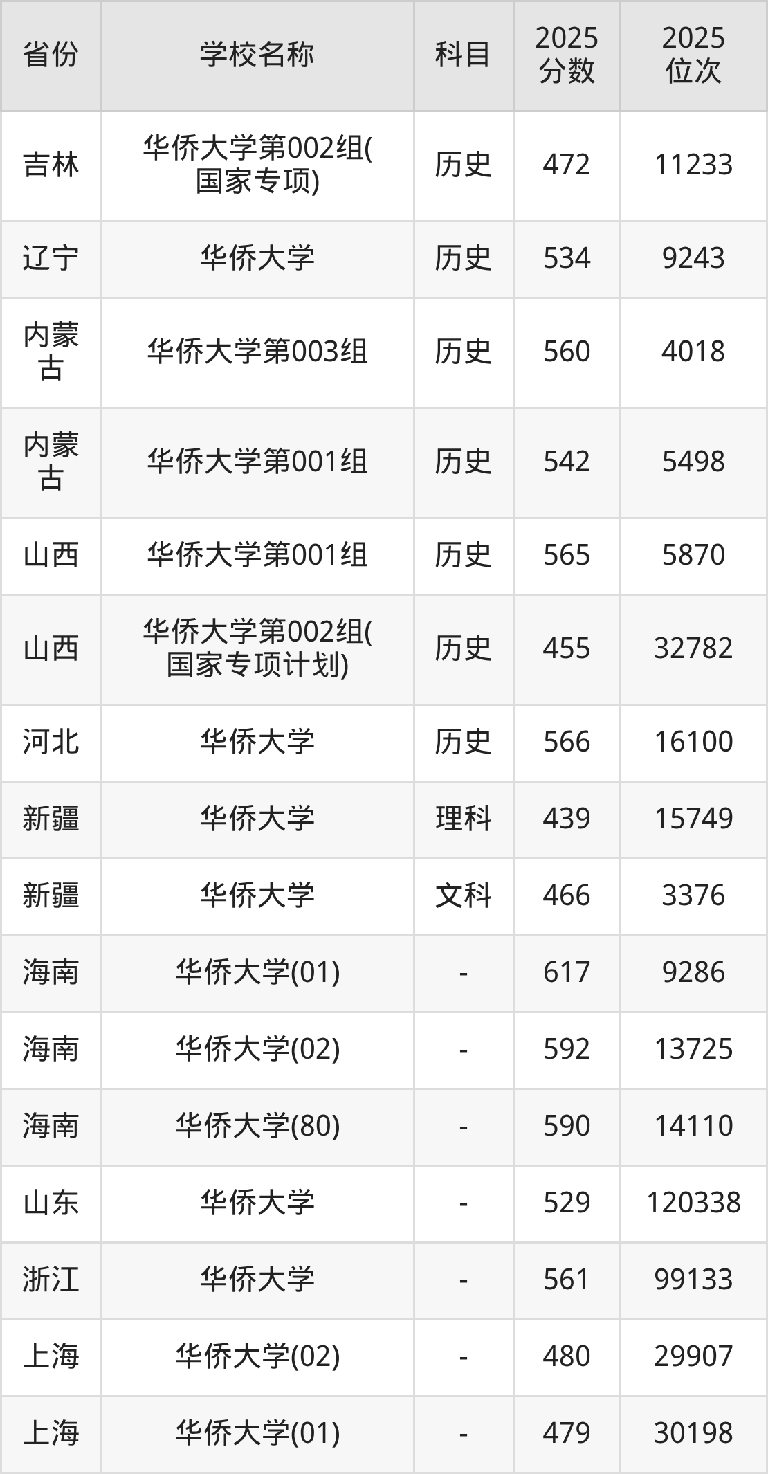 一、2025华侨大学录取分数线