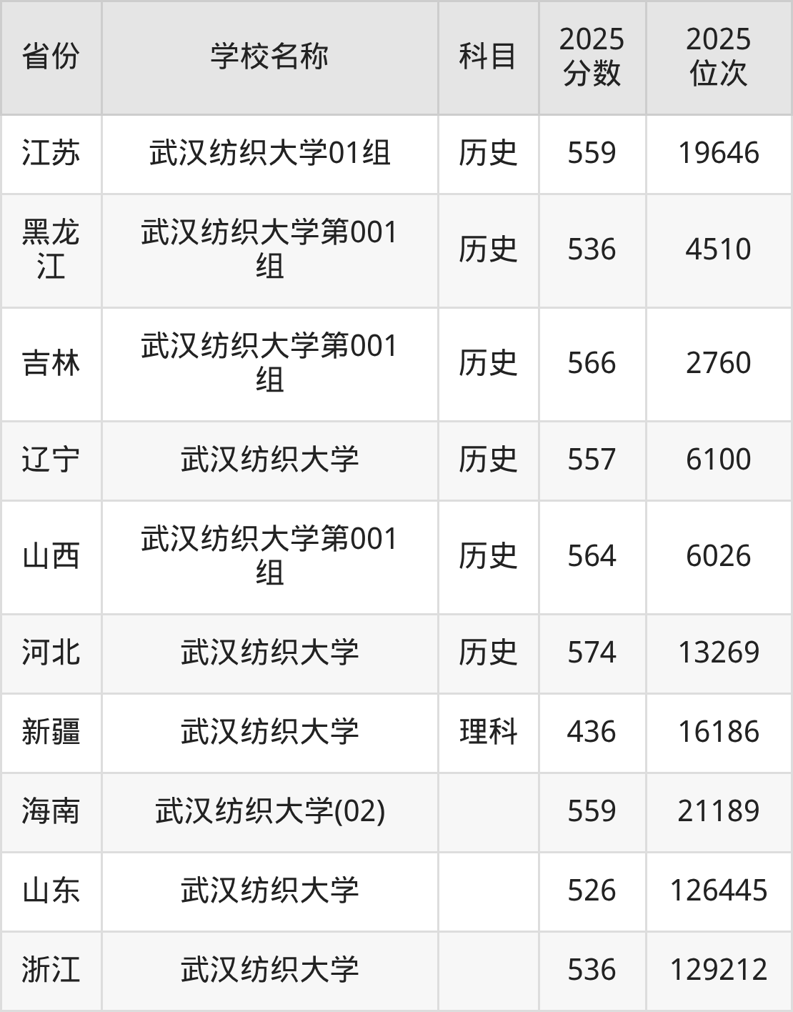 武汉纺织大学2025年有3个专业组面向湖北省内首选了历史科目的考生招生: