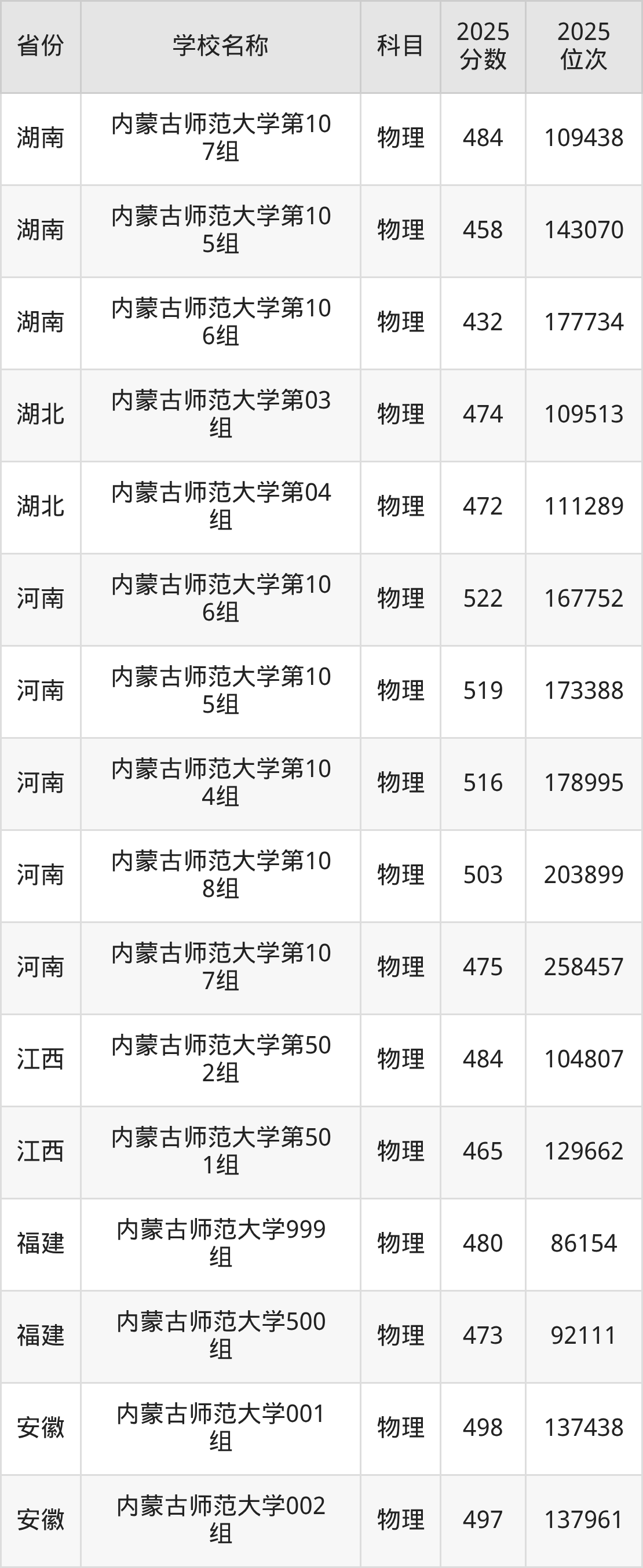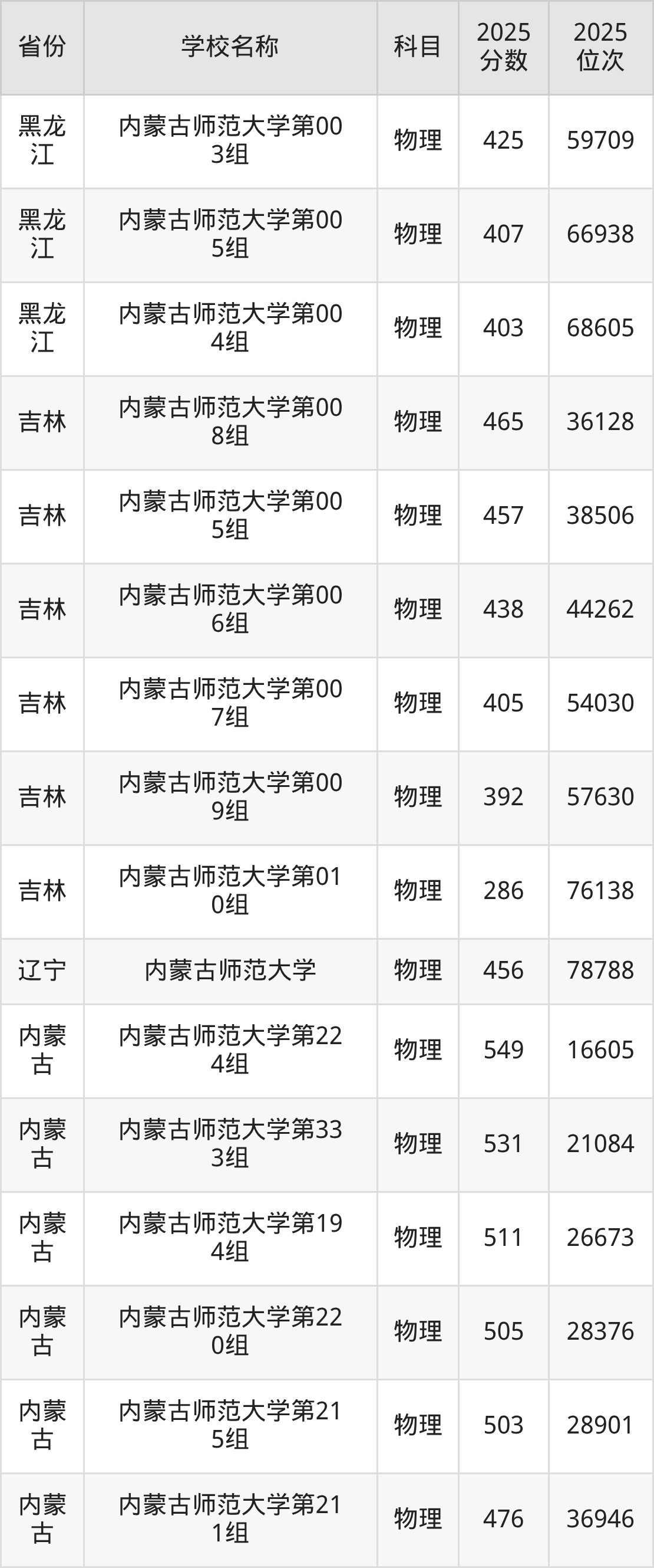 内蒙古师范大学2025年有95个专业组面向内蒙古自治区内首选了物理科目的考生招生: