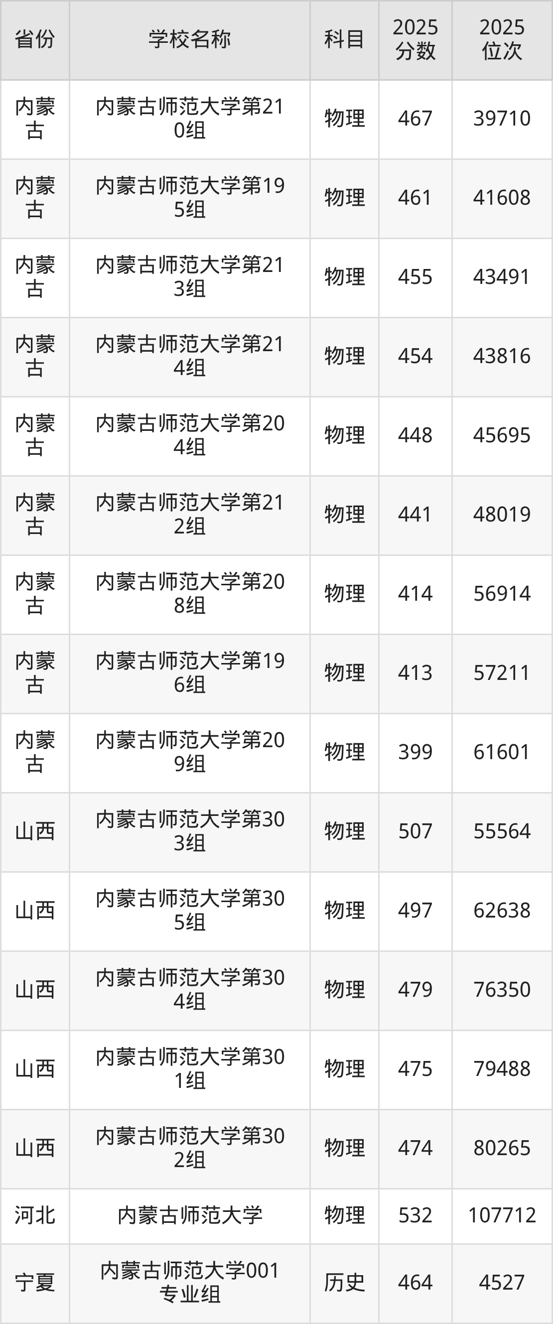 二、内蒙古师范大学各专业录取分数线
