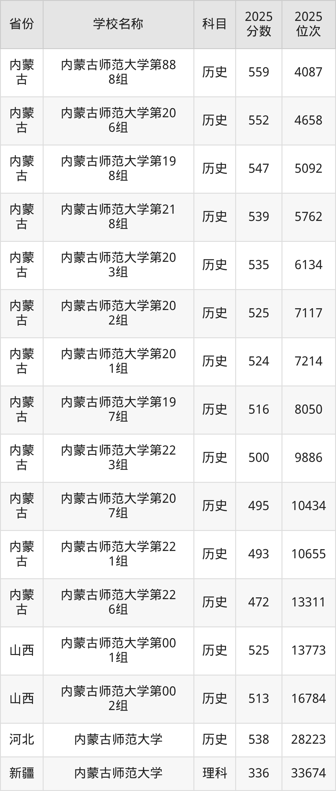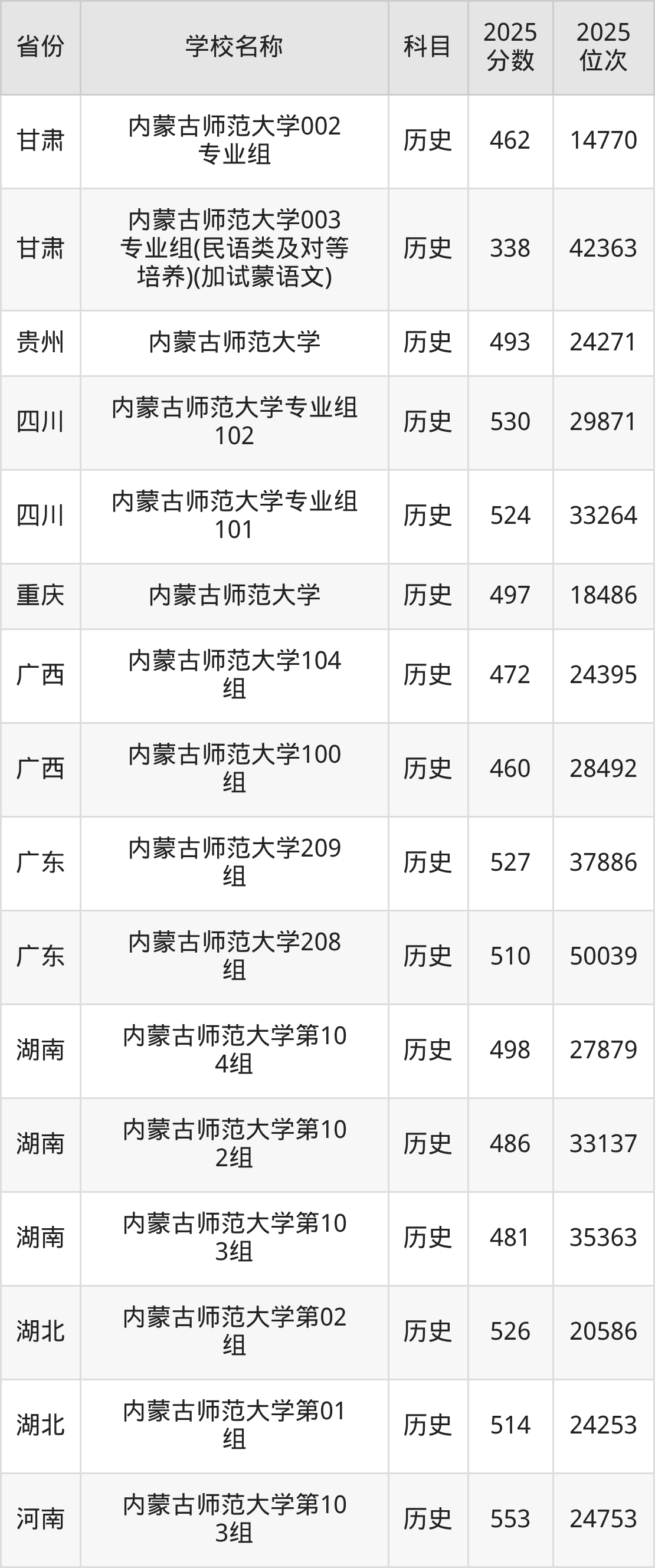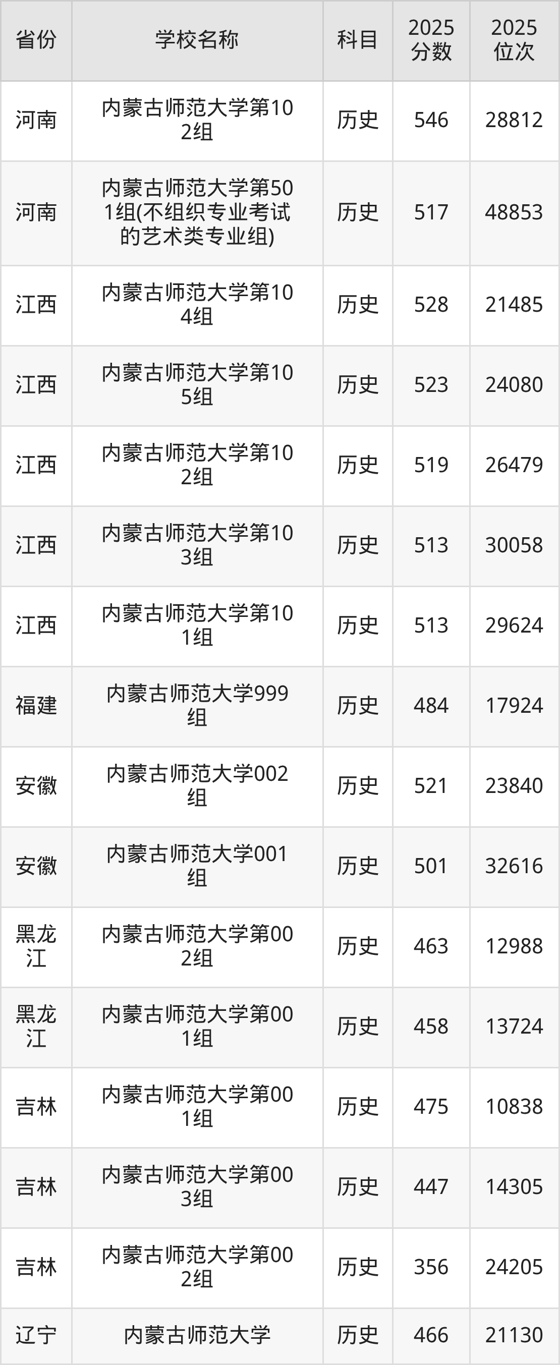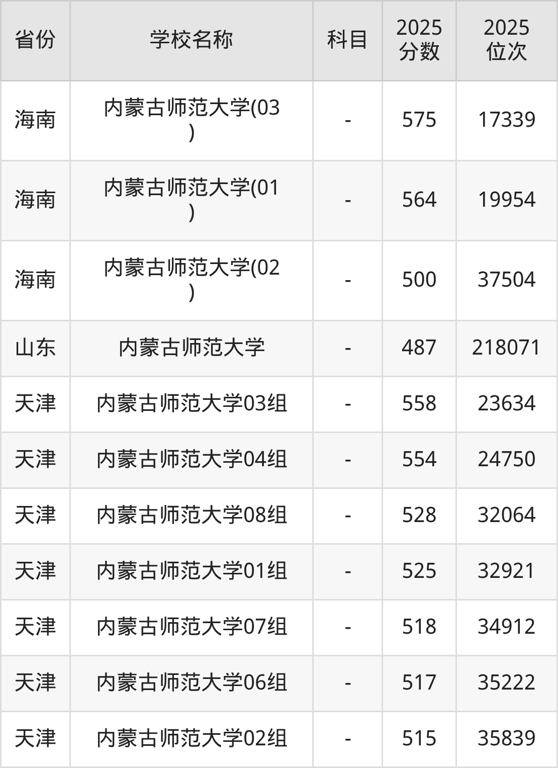一、2025内蒙古师范大学录取分数线