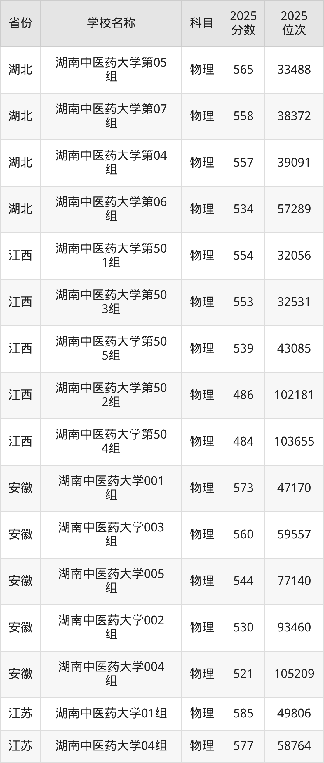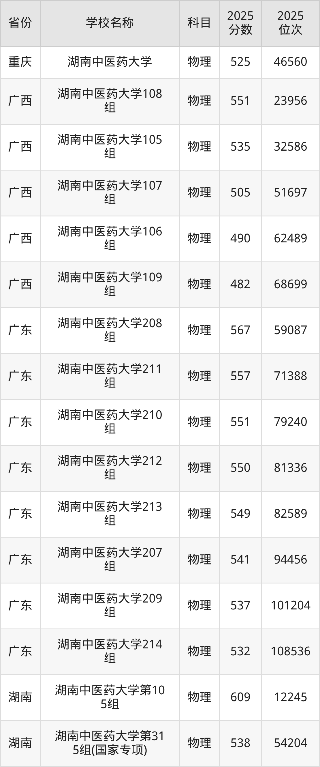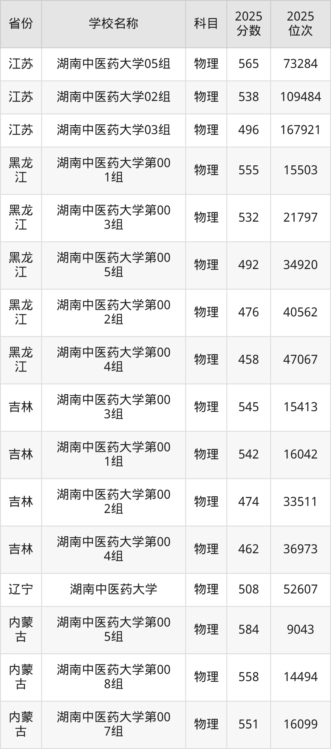 湖南中医药大学2025年有17个专业组面向湖南省内首选了物理科目的考生招生: