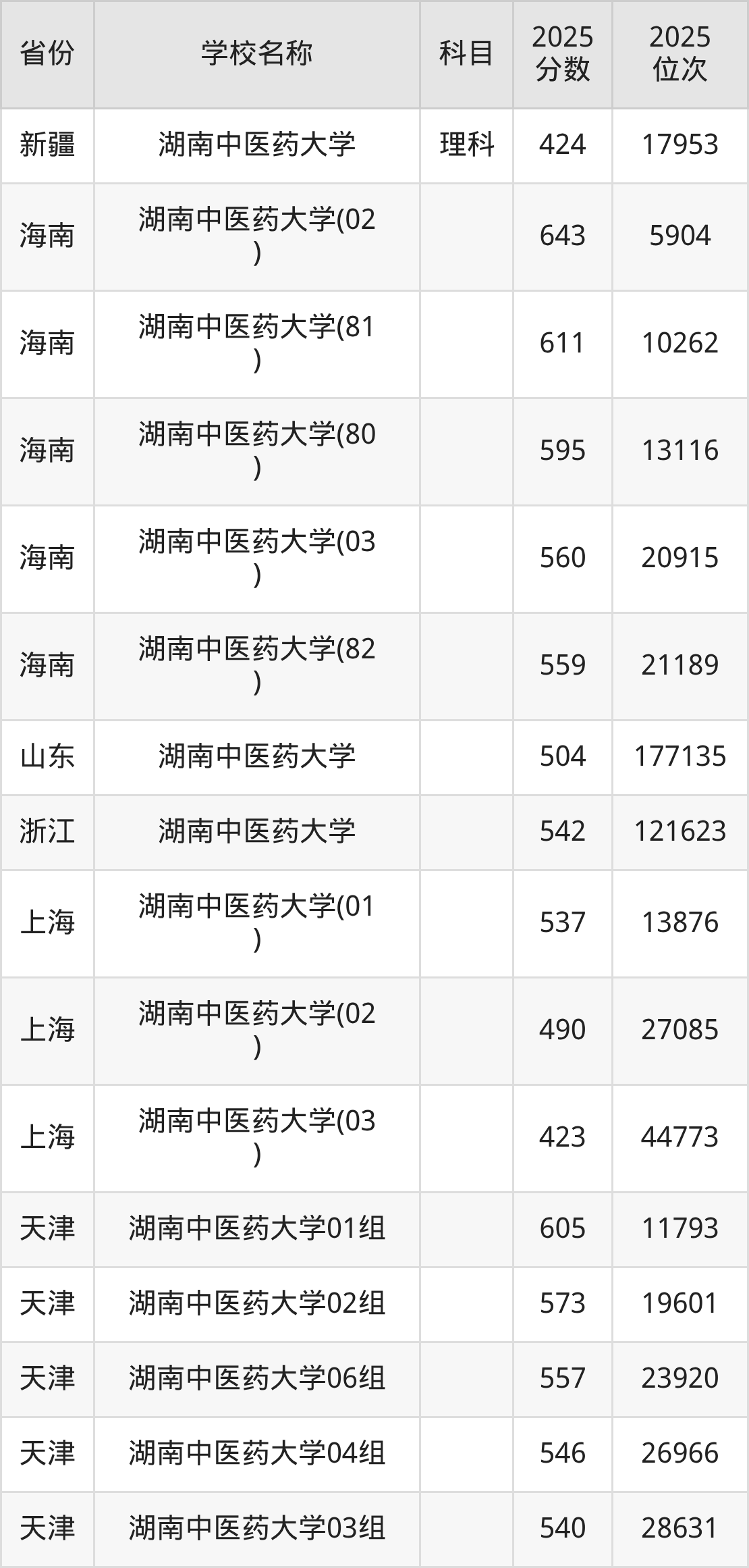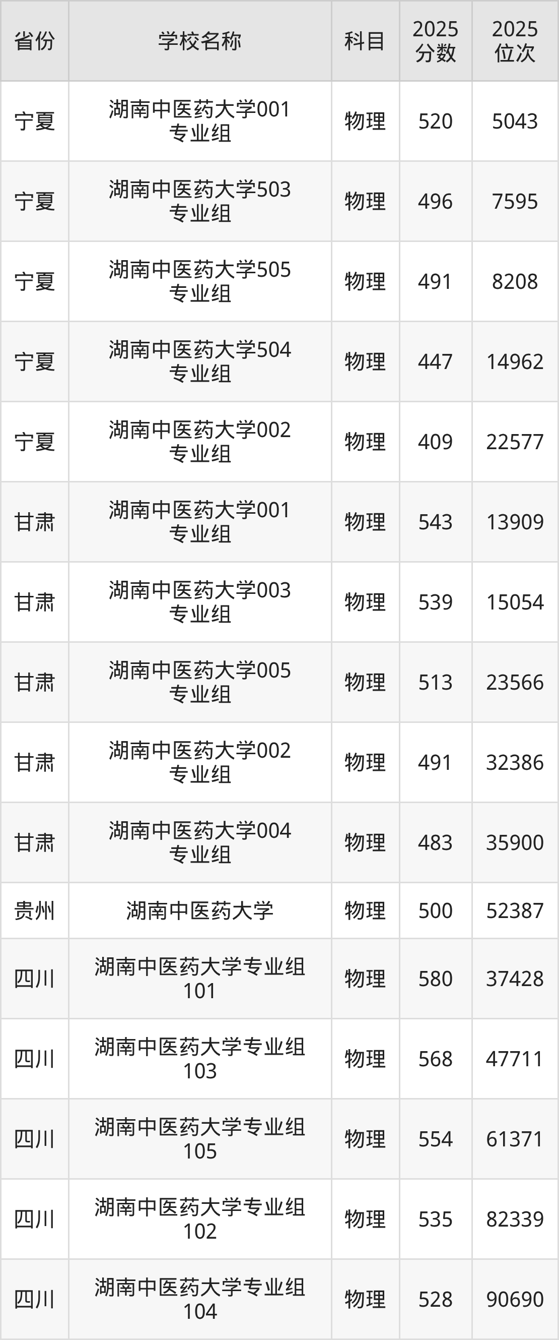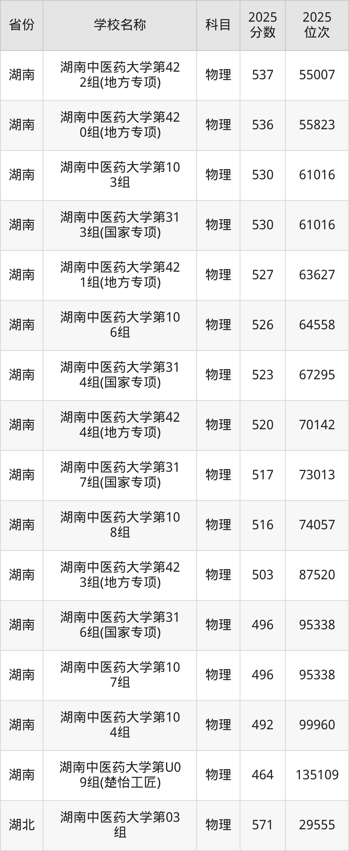 湖南中医药大学2025年有17个专业组面向湖南省内首选了物理科目的考生招生:
