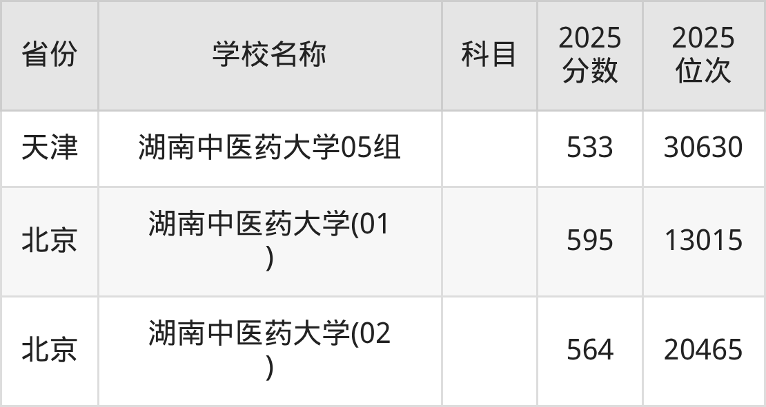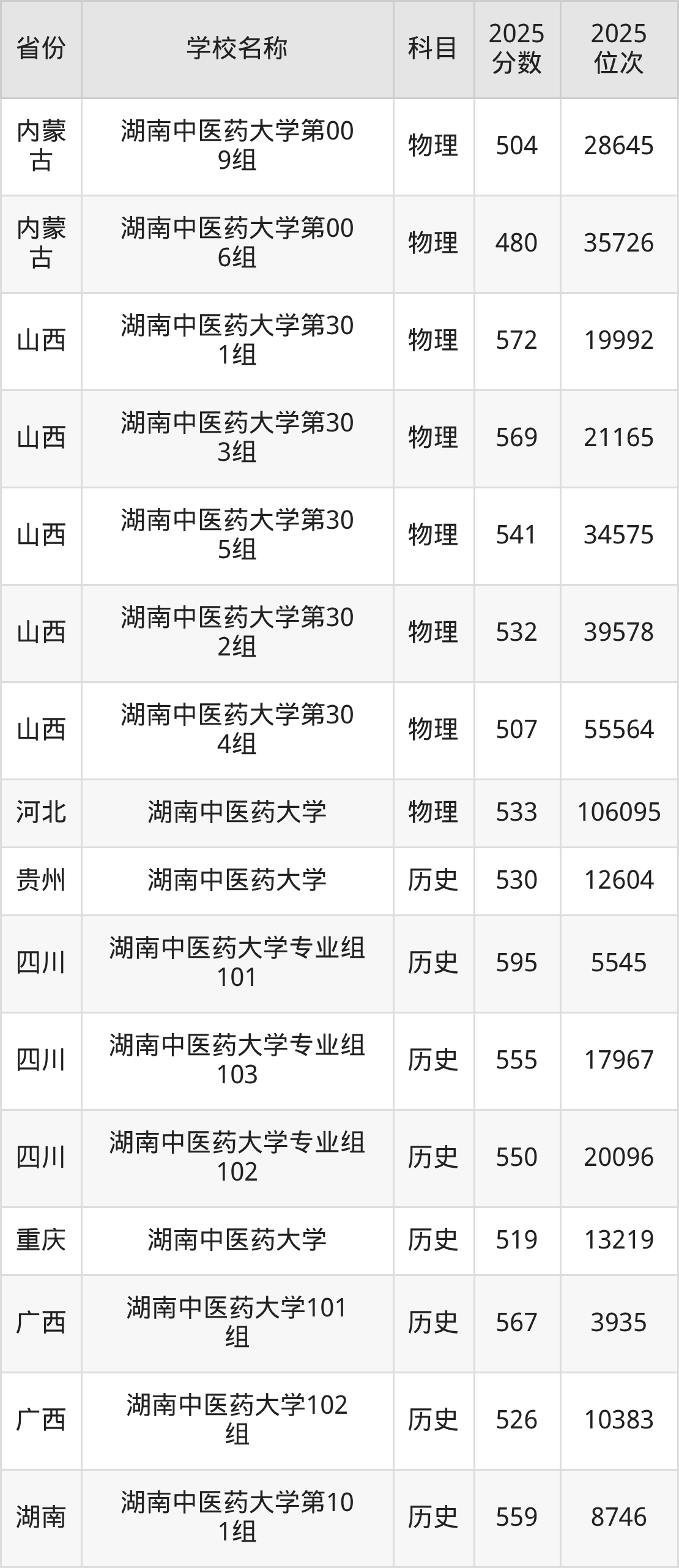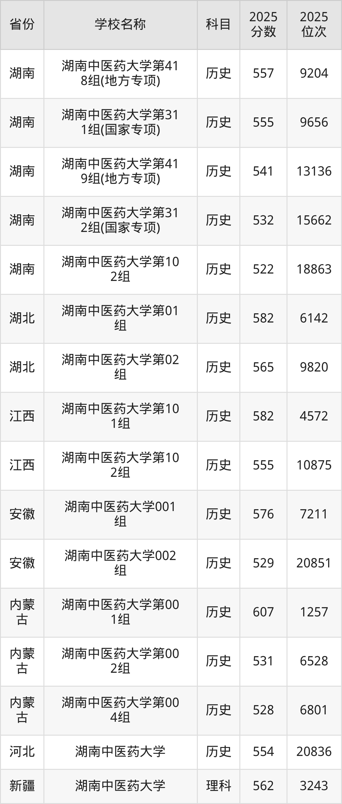 湖南中医药大学2025年有6个专业组面向湖南省内首选了历史科目的考生招生: