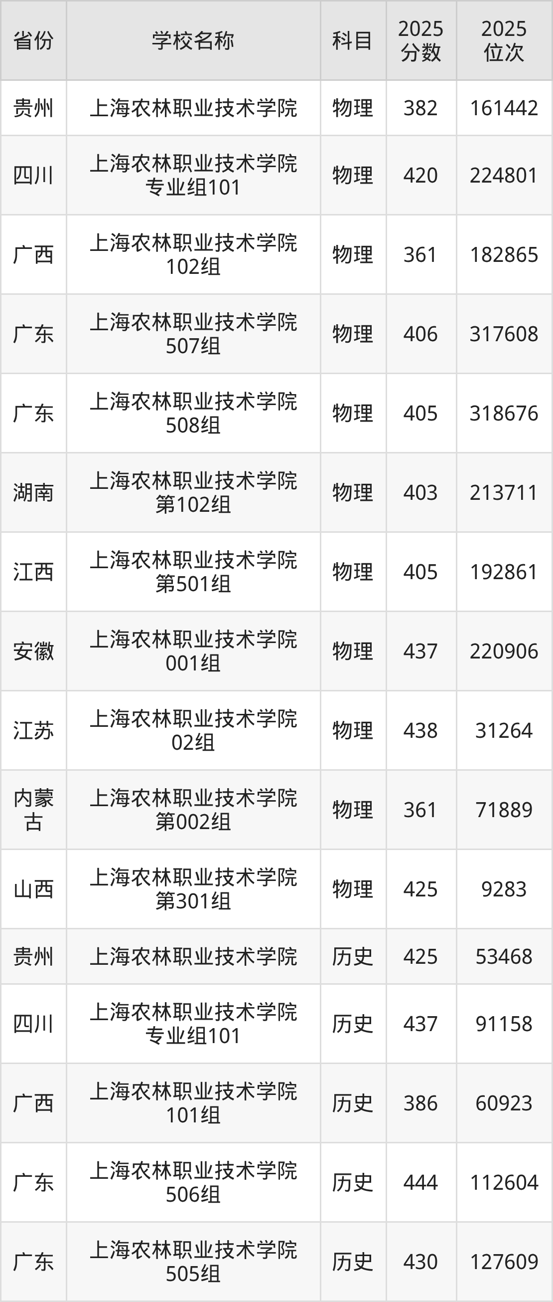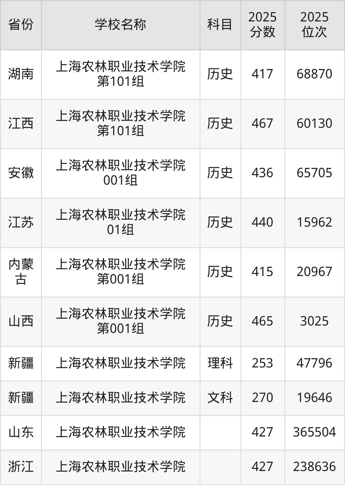 一、2025上海农林职业技术学院录取分数线