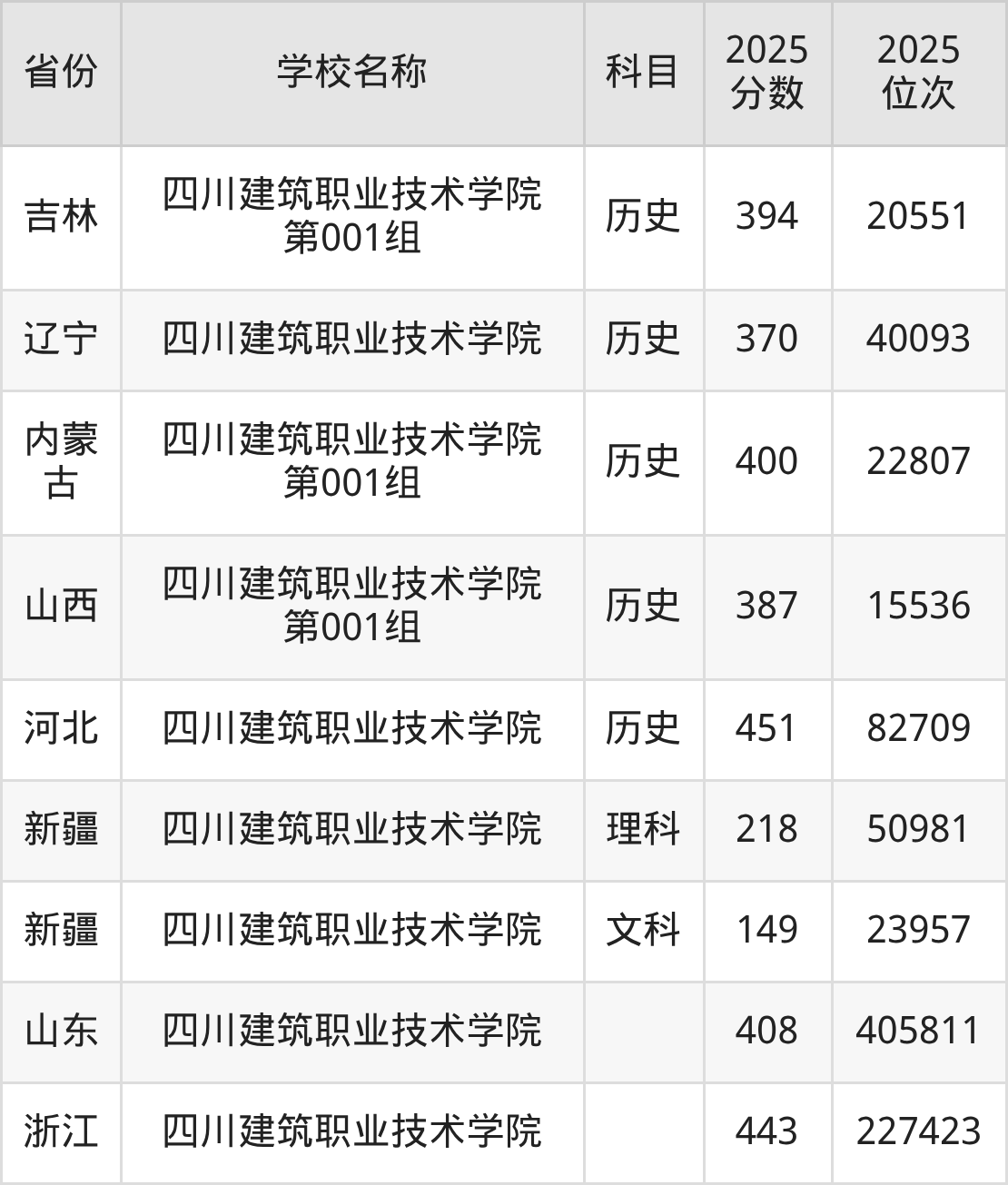 2025年四川建筑职业技术学院在全国各省专科的最低录取分数线在149~461分之间。浙江高考生最低443分能上四川建筑职业技术学院、河北物理类高考生最低427分能上四川建筑职业技术学院……下文将展示四川建筑职业技术学院在全国21个高考省份中的专科最低投档录取分汇总!