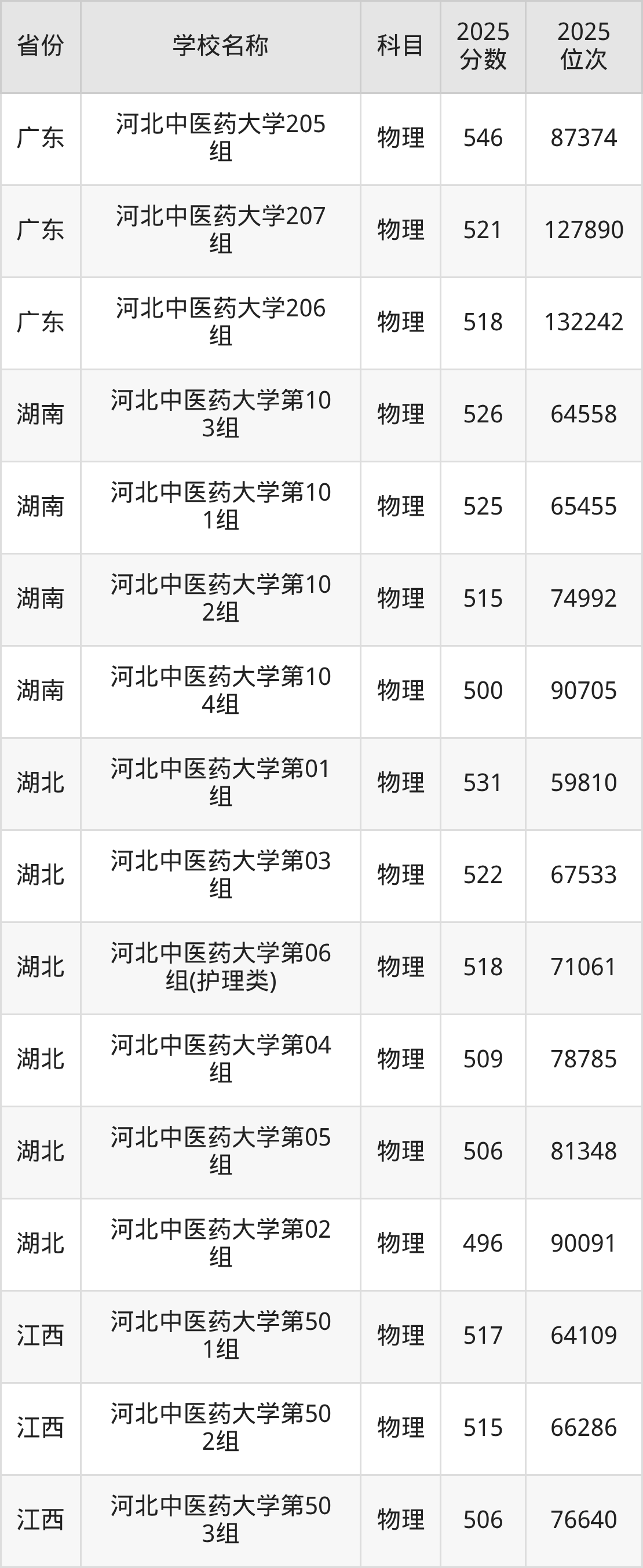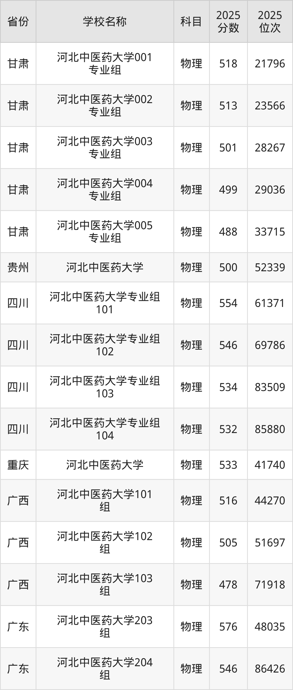 13、中药学专业:2025年最低540分、最低位次是95459