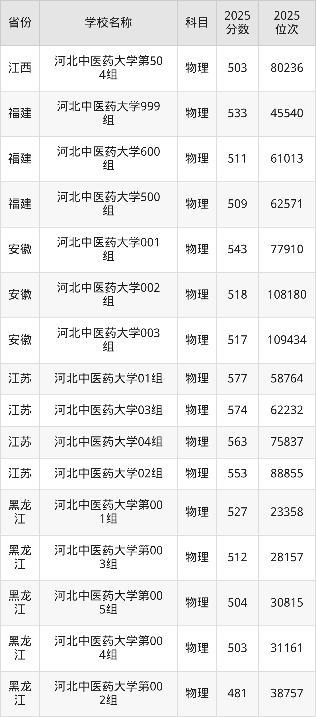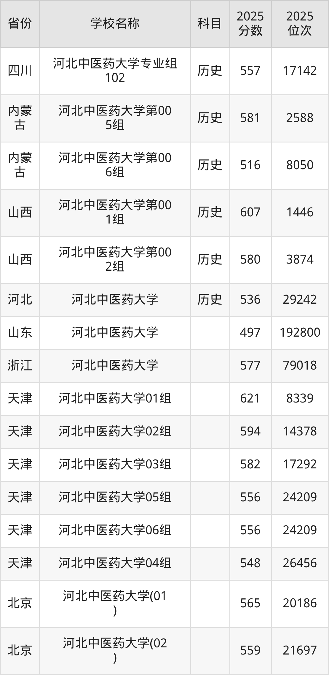 二、河北中医药大学各专业录取分数线