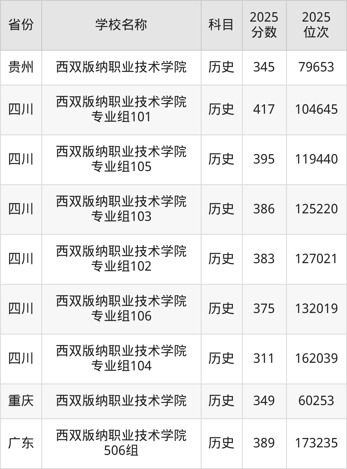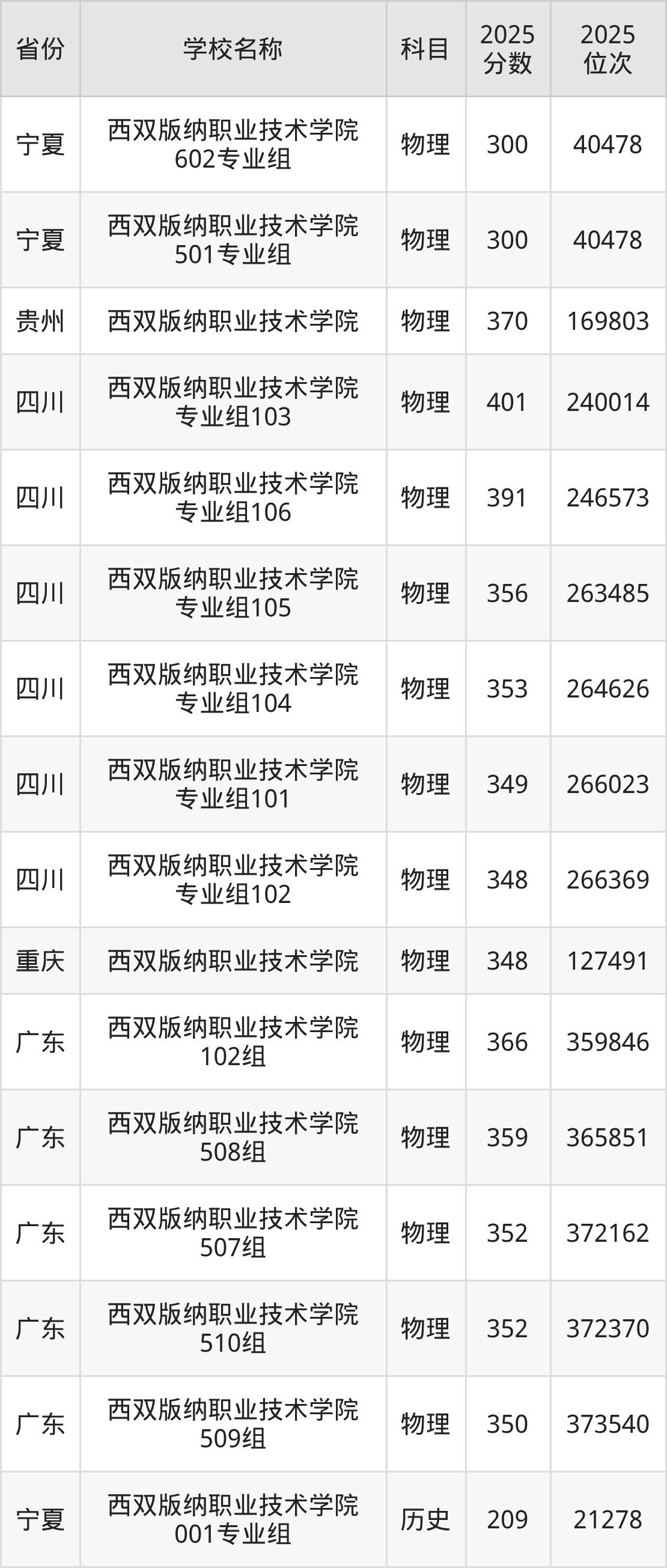 一、2025西双版纳职业技术学院录取分数线