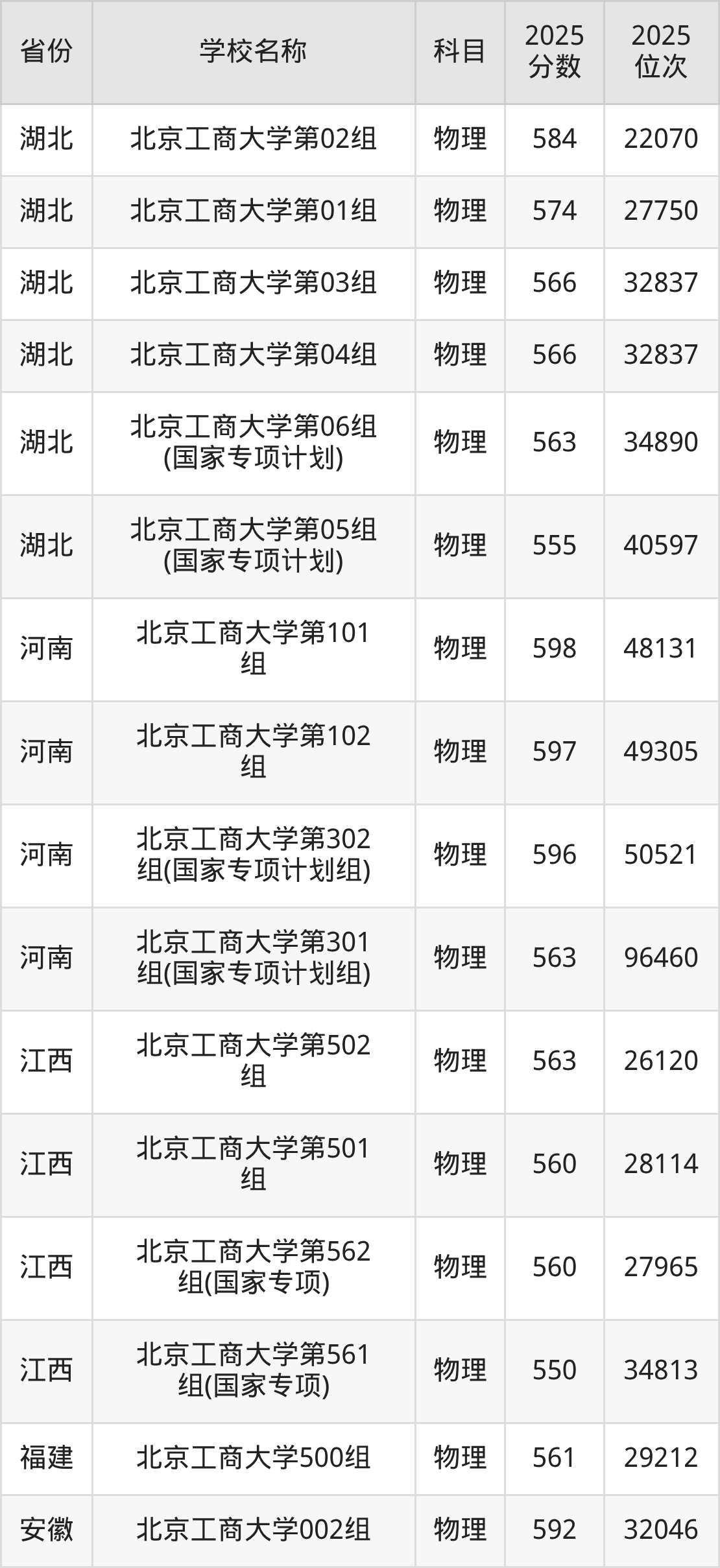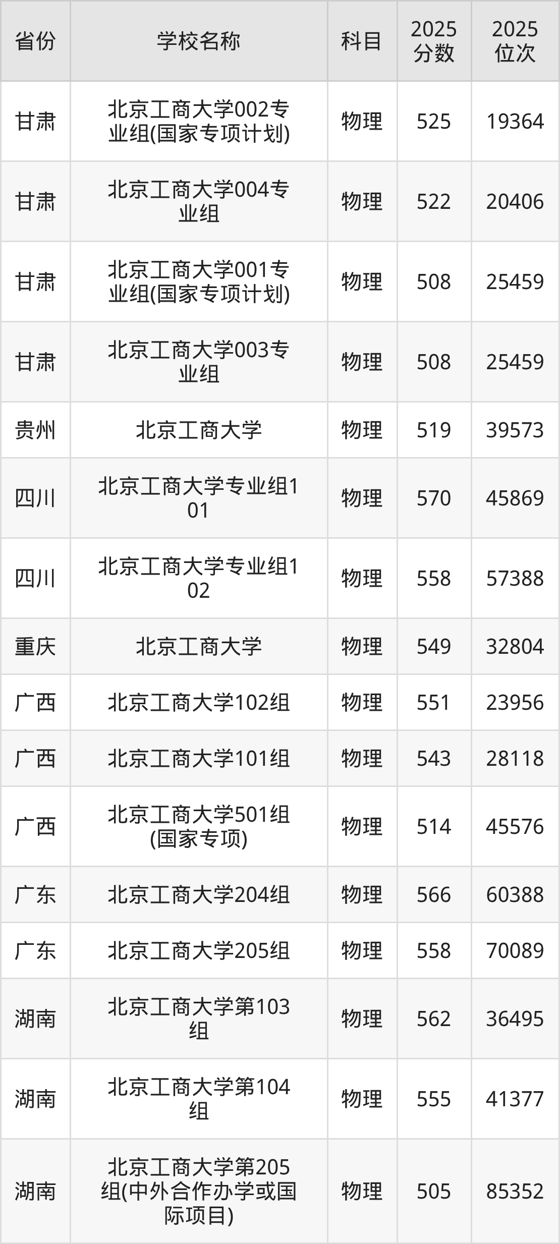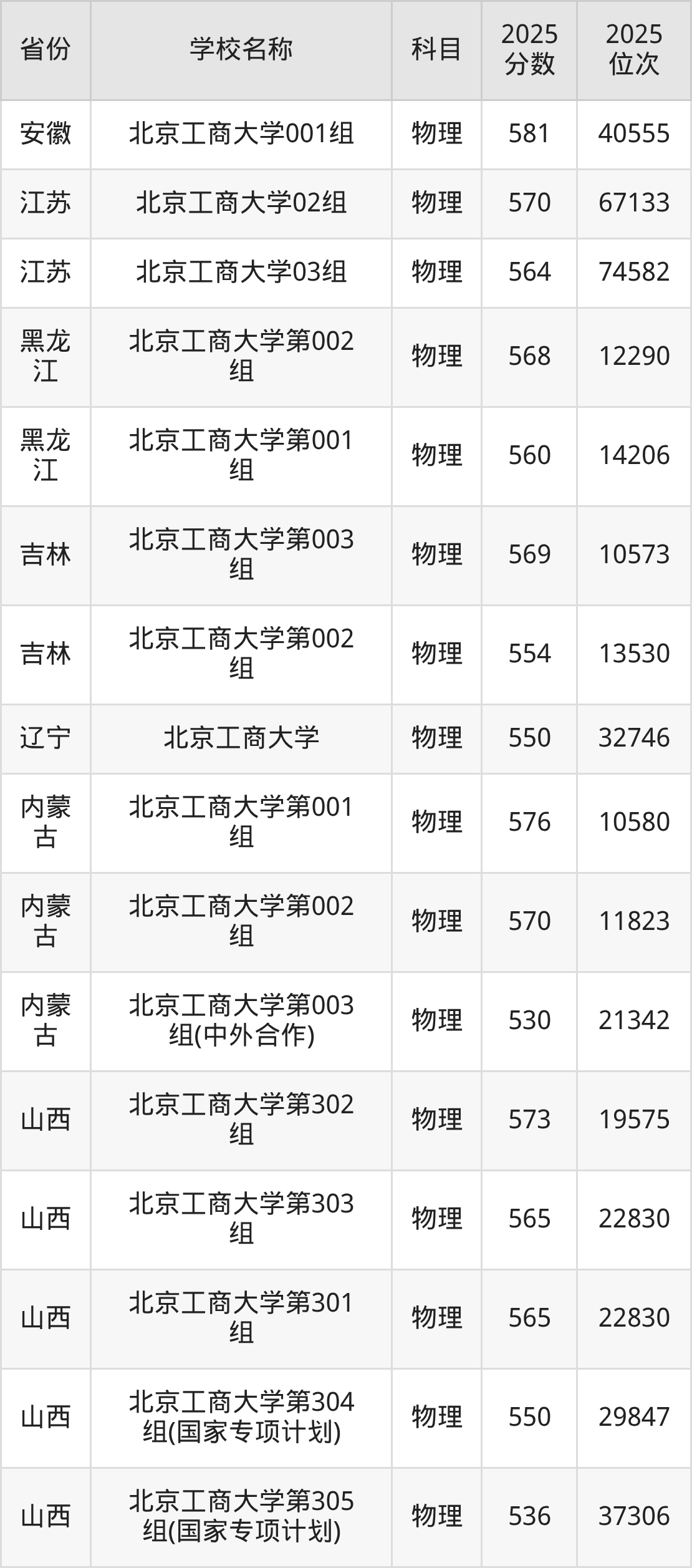 二、北京工商大学各专业录取分数线
