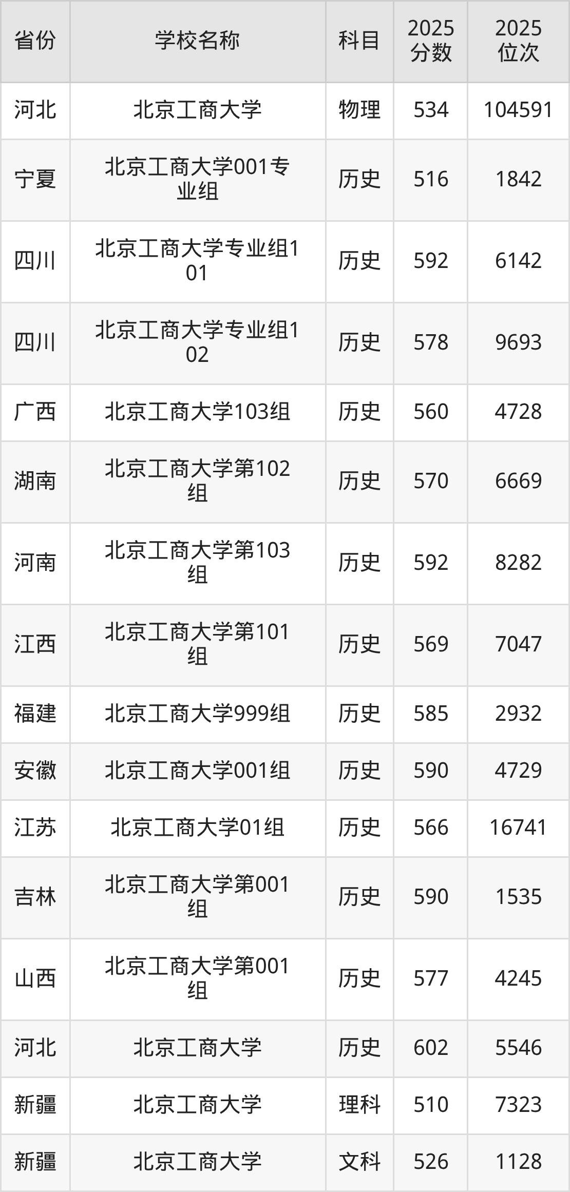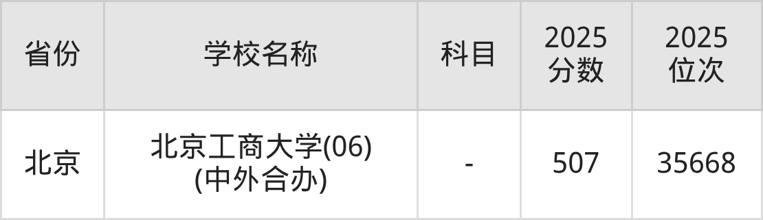 一、2025北京工商大学录取分数线