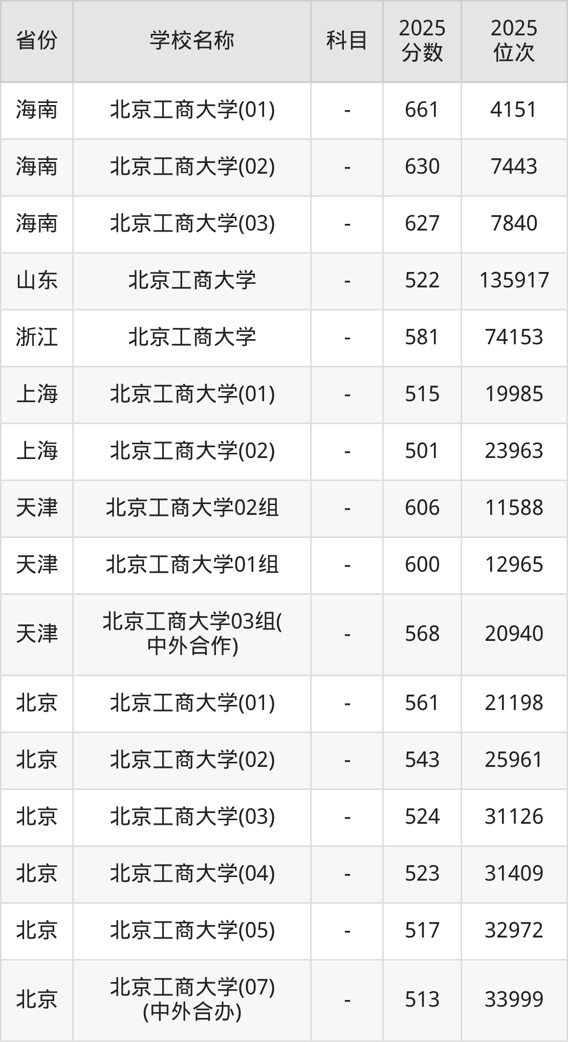 2025年北京工商大学在全国各省本科的最低录取分数线在501~661分之间。海南高考生最低661分能上北京工商大学、天津高考生最低606分能上北京工商大学……下文将展示北京工商大学在全国27个高考省份中的本科最低投档录取分汇总!
