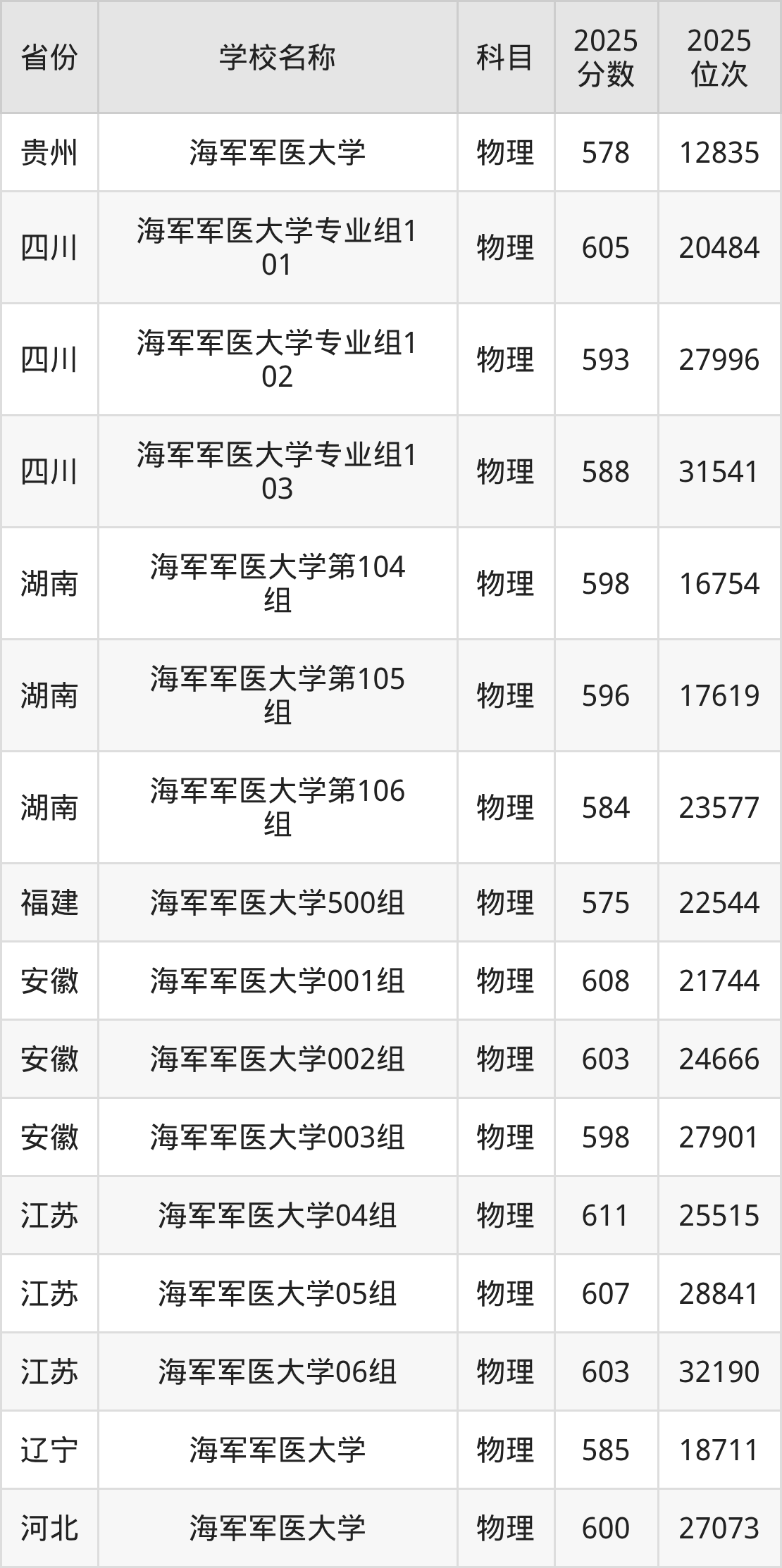 一、2025海军军医大学录取分数线