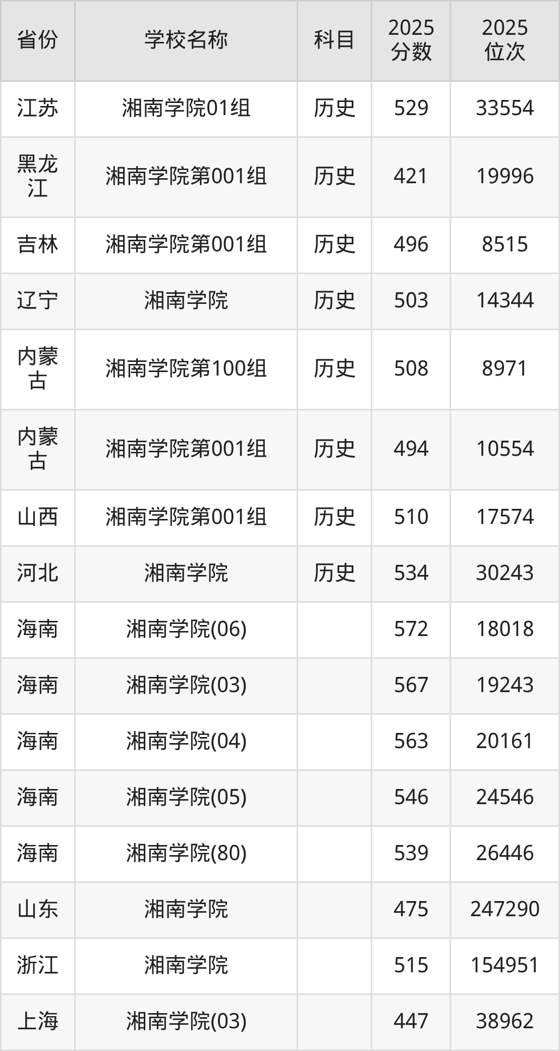 湘南学院2025年有12个专业组面向湖南省内首选了历史科目的考生招生: