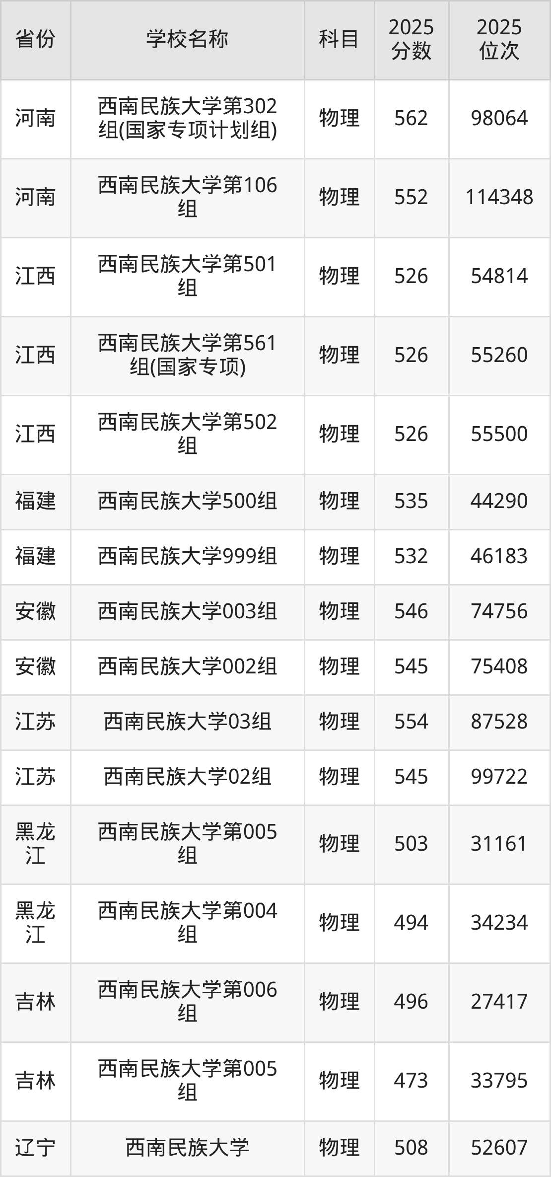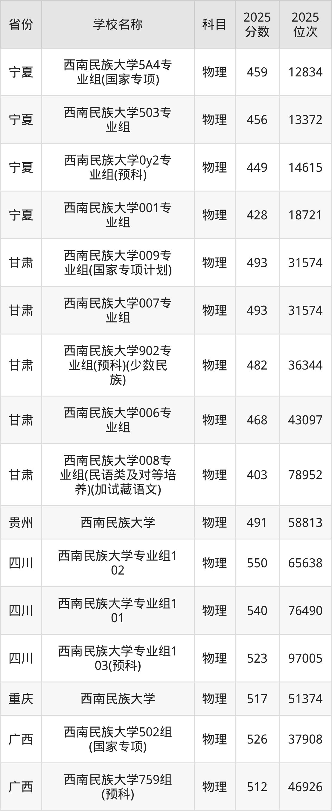 西南民族大学2025年有3个专业组面向四川省内首选了物理科目的考生招生:
