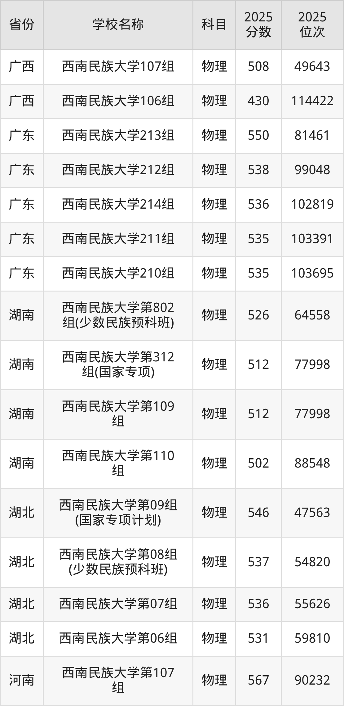 4、民族预科班专业:2025年最低533分、最低位次是20532