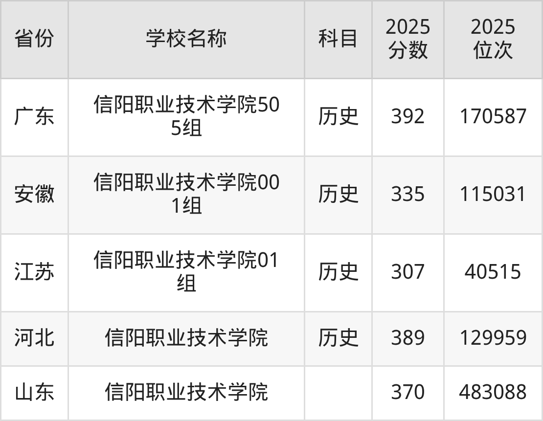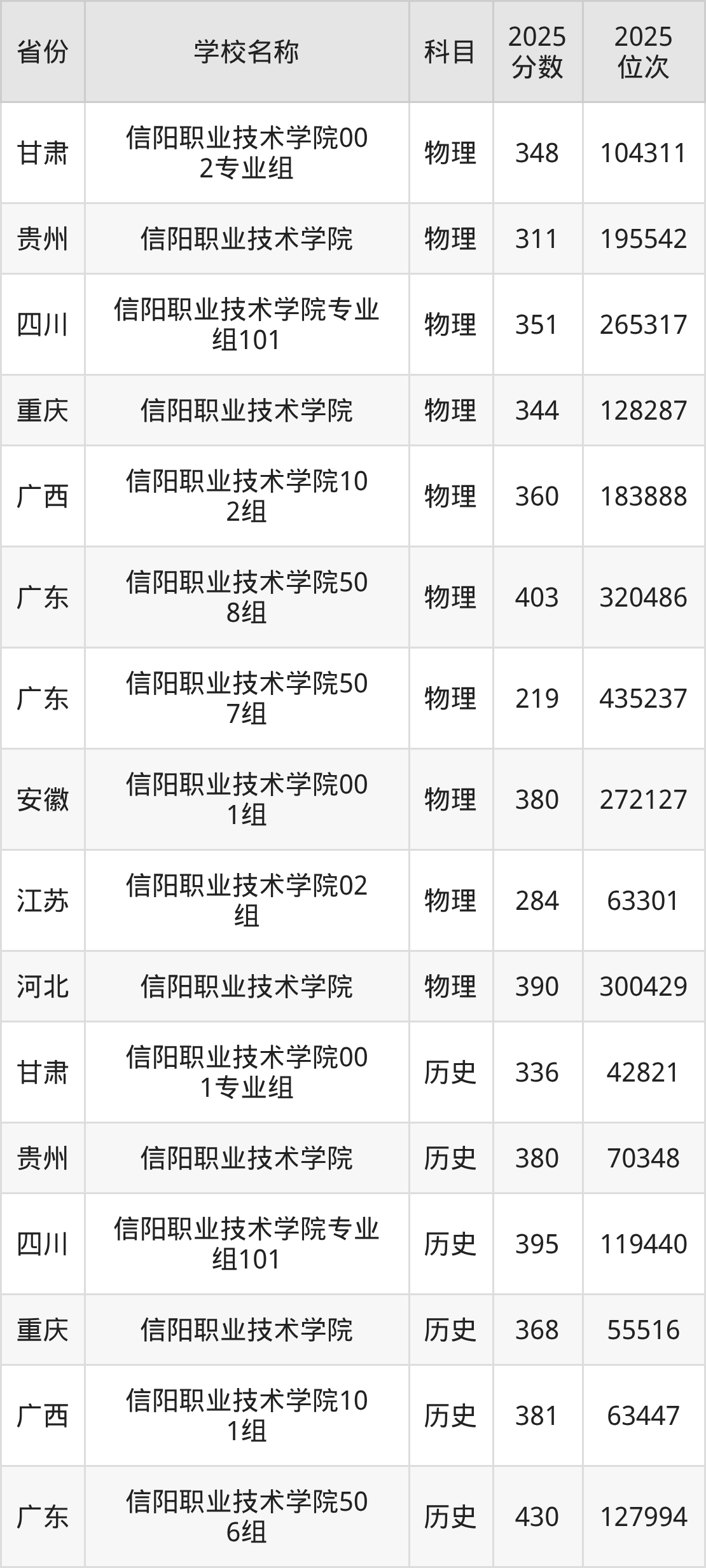 2025年信阳职业技术学院在全国各省专科的最低录取分数线在219~430分之间。广东物理类高考生最低403分能上信阳职业技术学院、河北物理类高考生最低390分能上信阳职业技术学院……下文将展示信阳职业技术学院在全国10个高考省份中的专科最低投档录取分汇总!