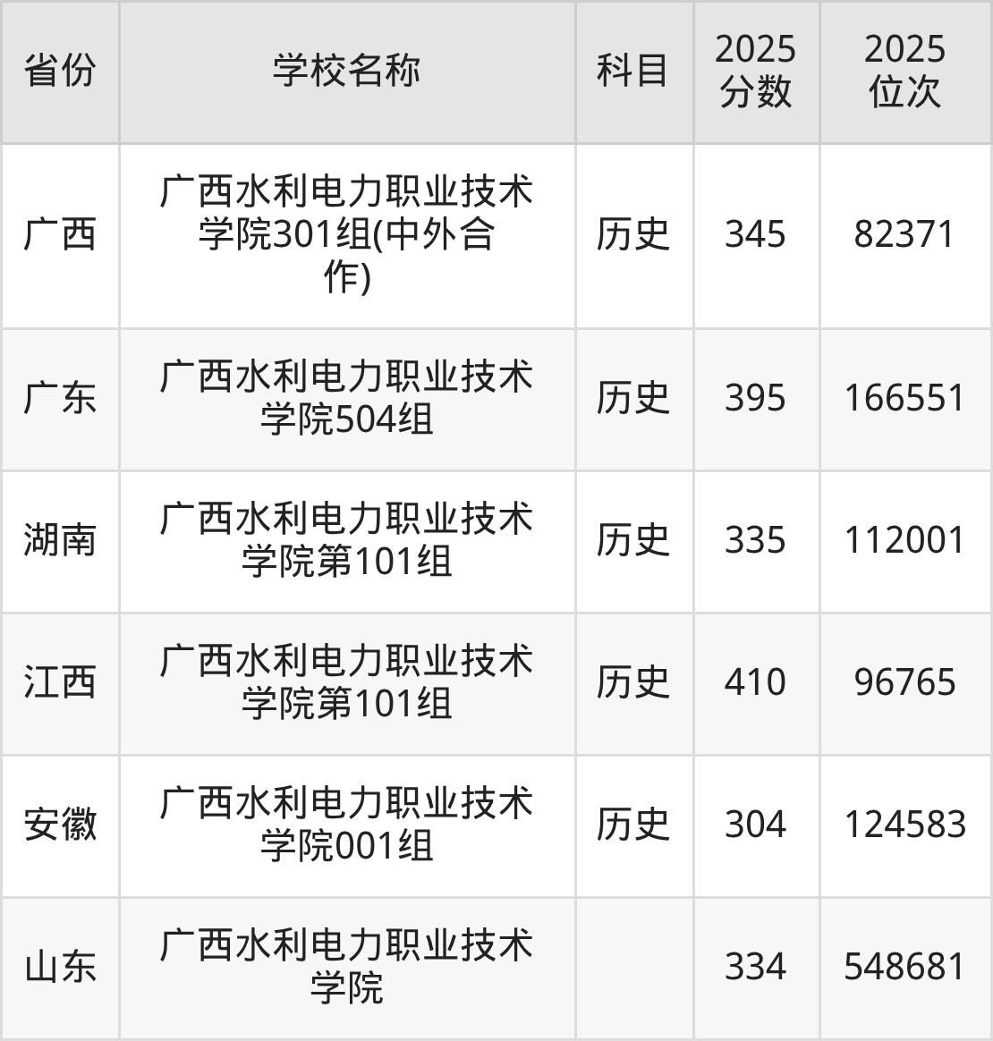 广西水利电力职业技术学院2025年有3个专业组面向广西壮族自治区内首选了历史科目的考生招生:
