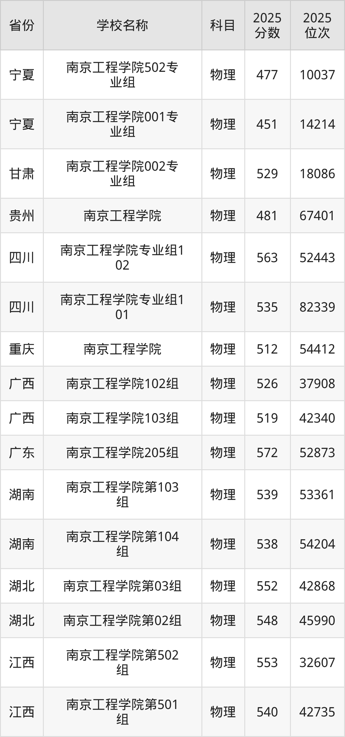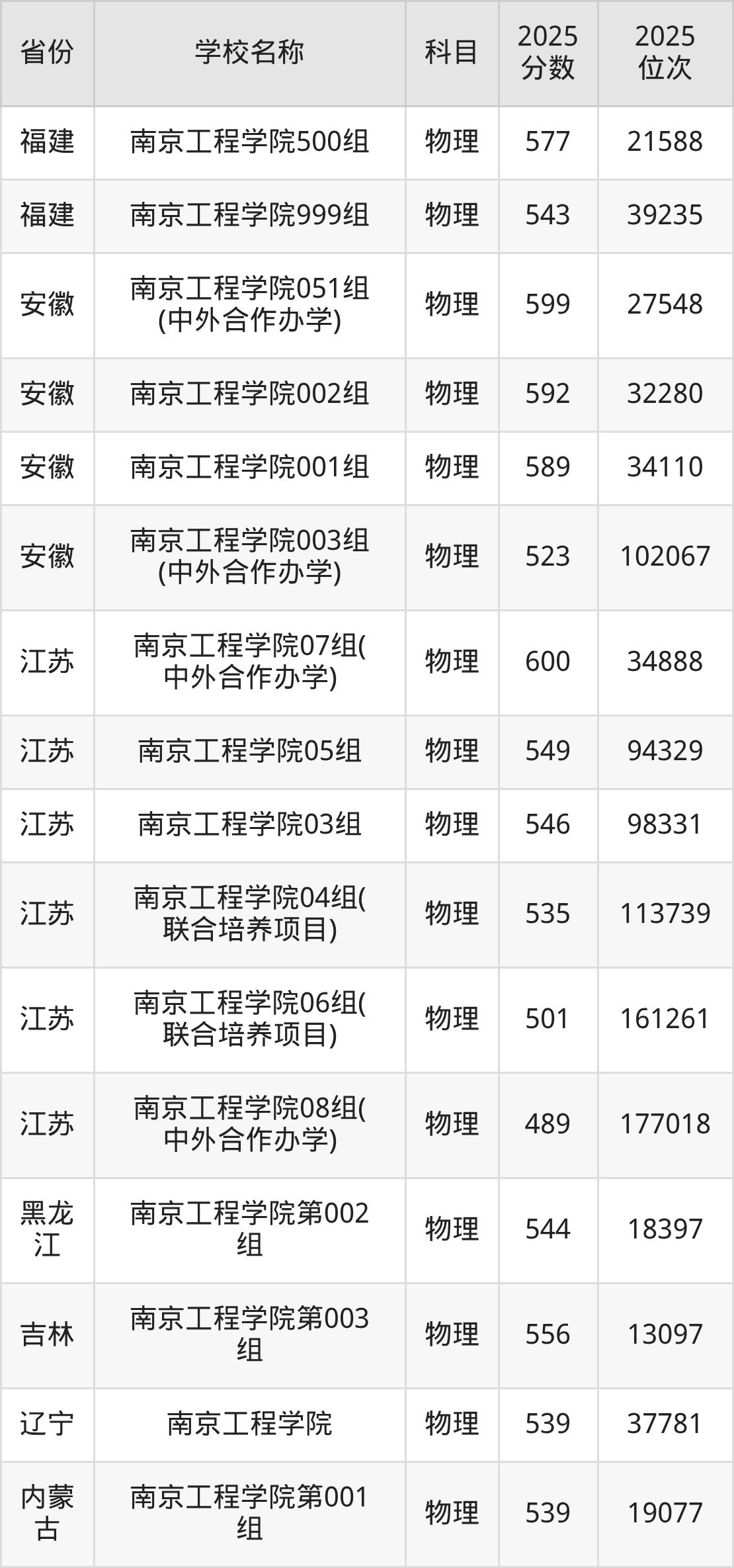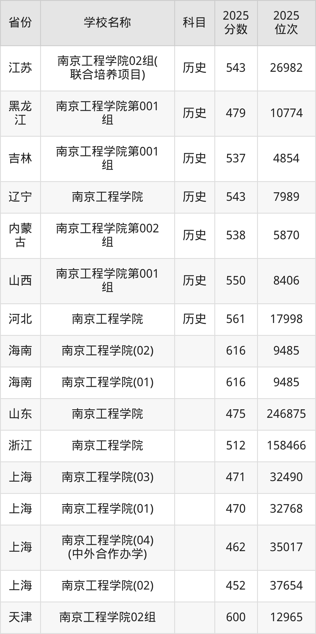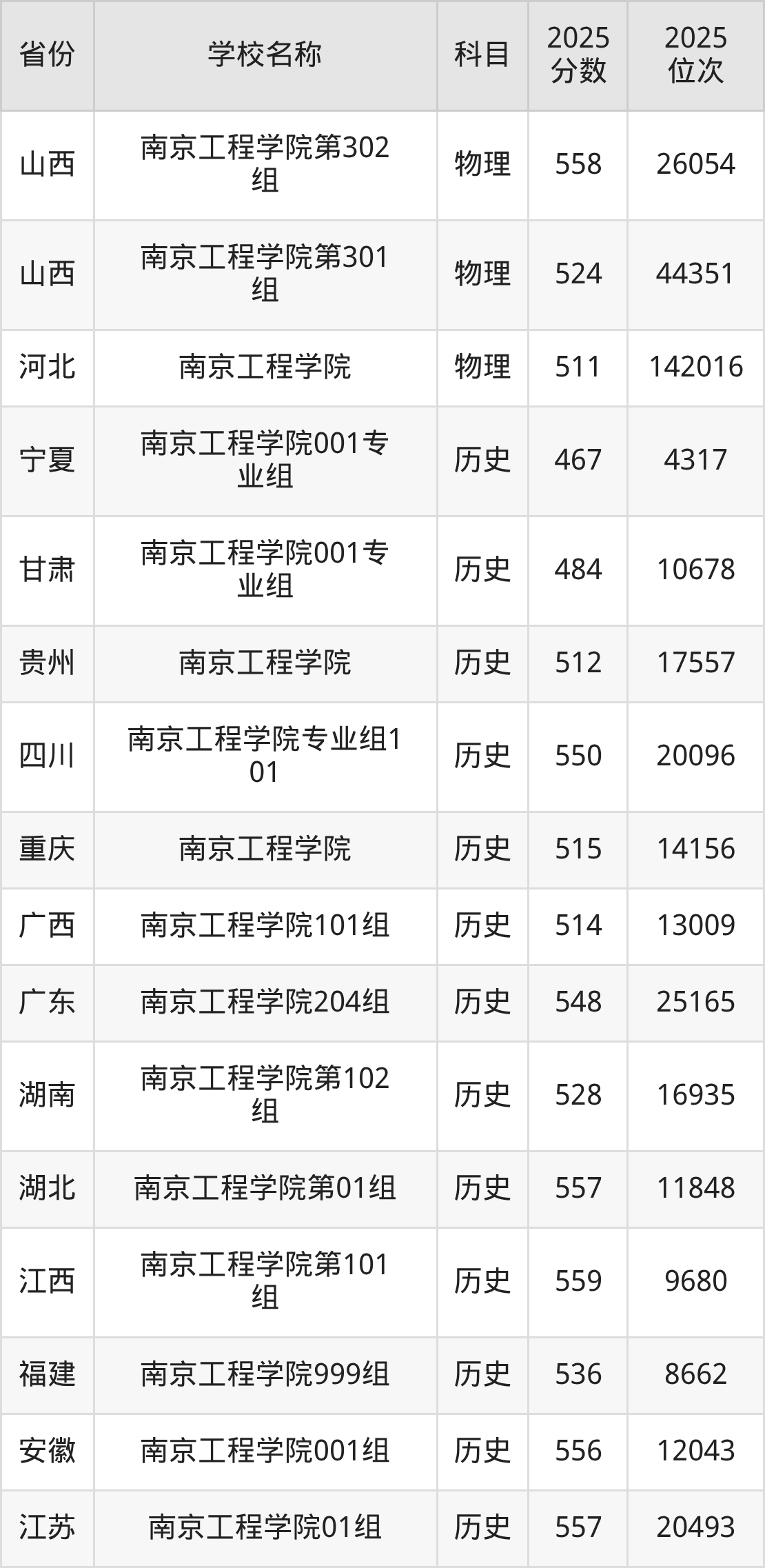 二、南京工程学院各专业录取分数线