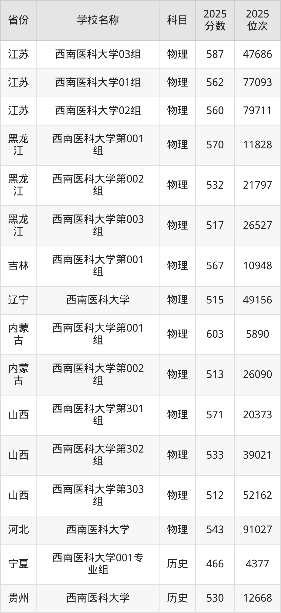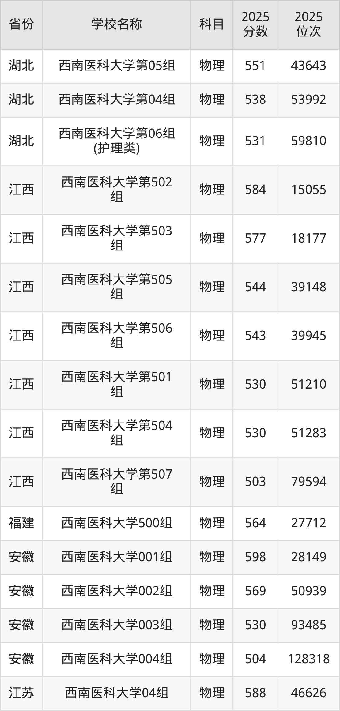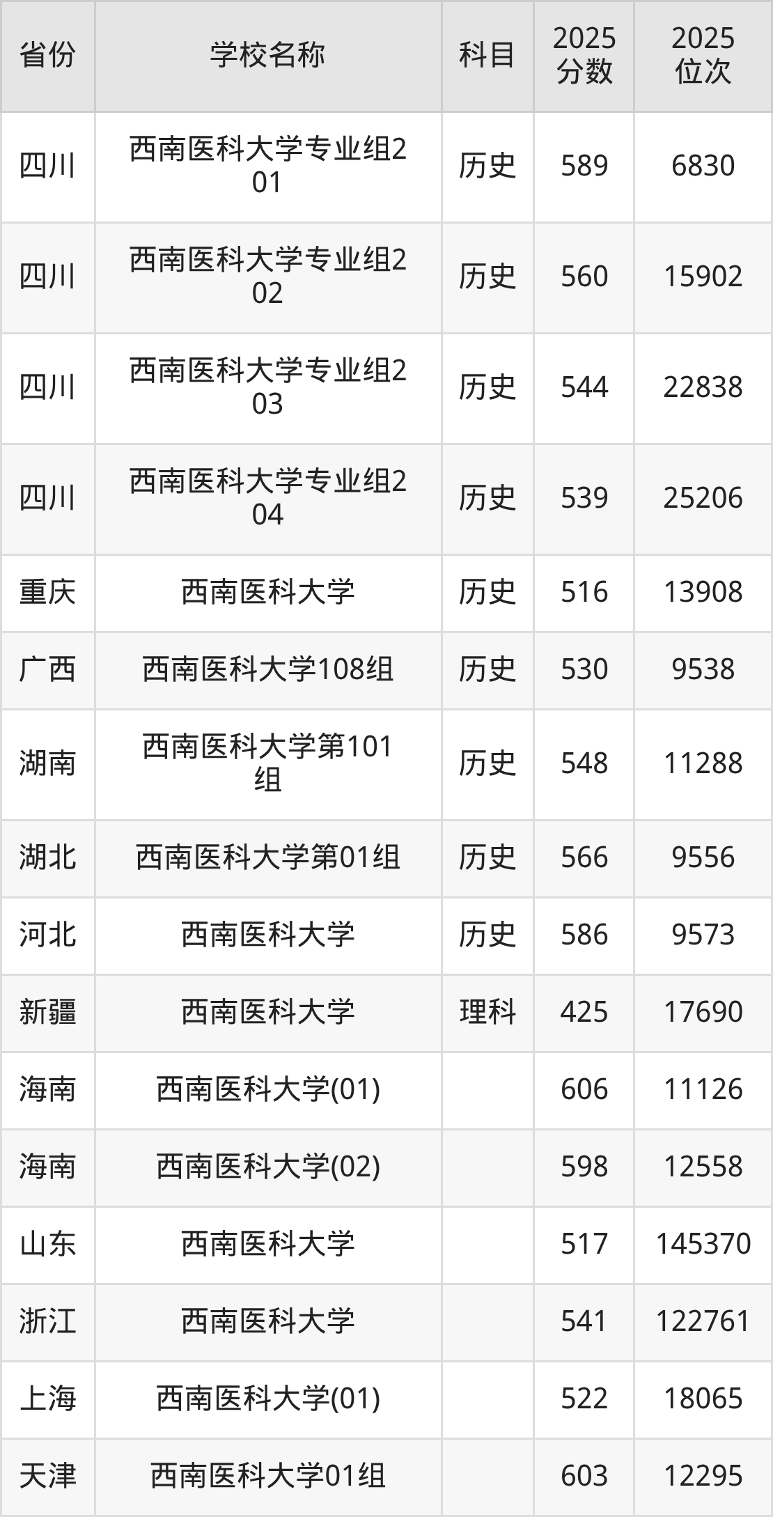 7、预防医学专业:2025年最低528分、最低位次是42898