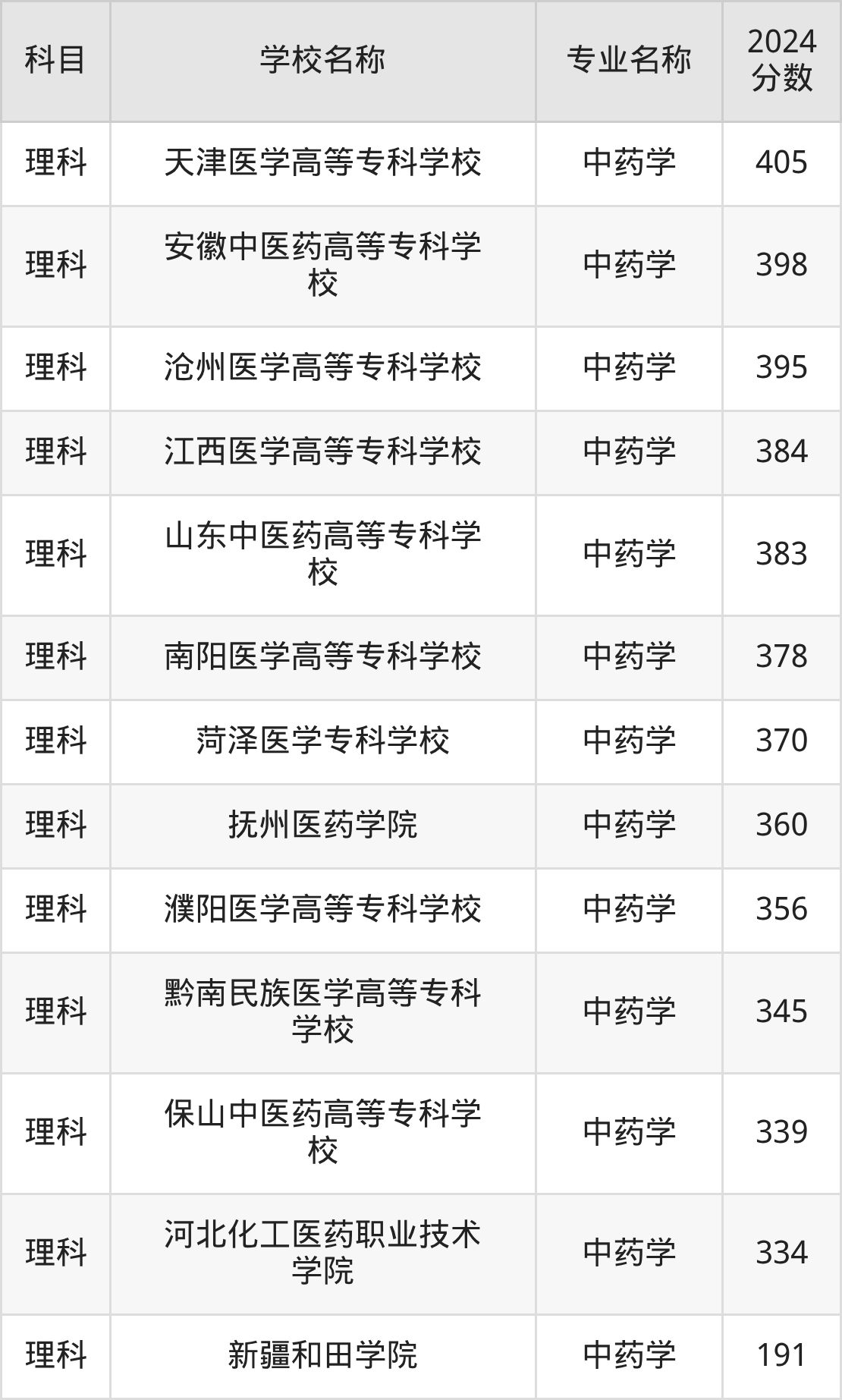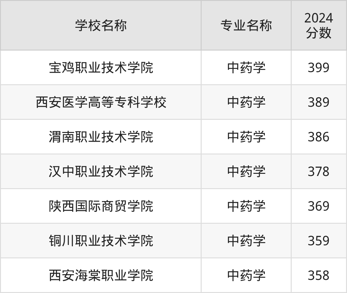 | 汉中职业技术学院 | 中药学 | 370 |