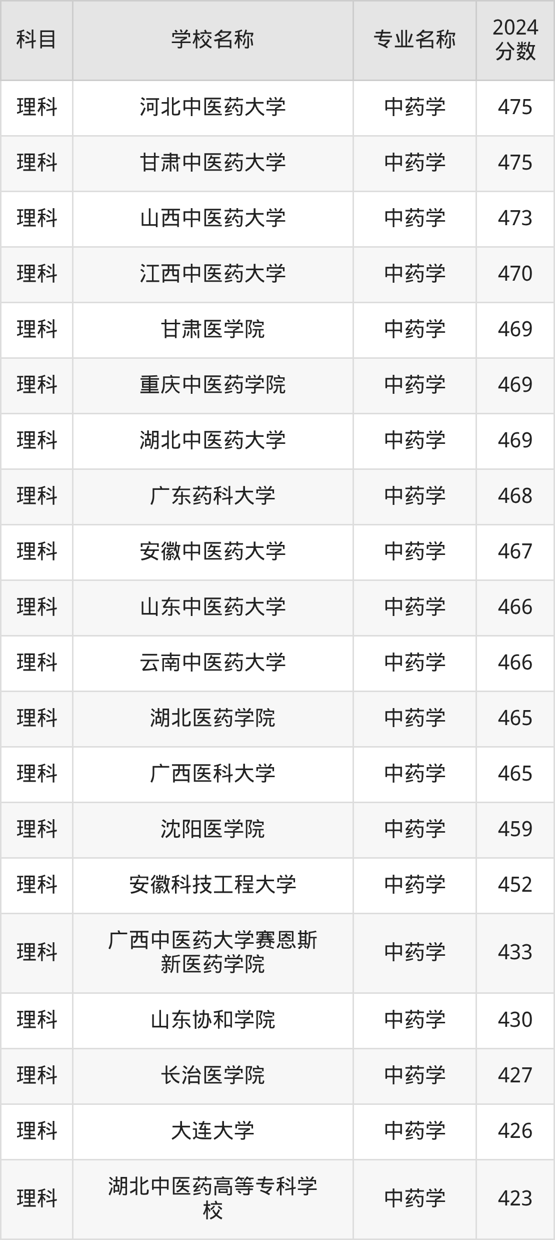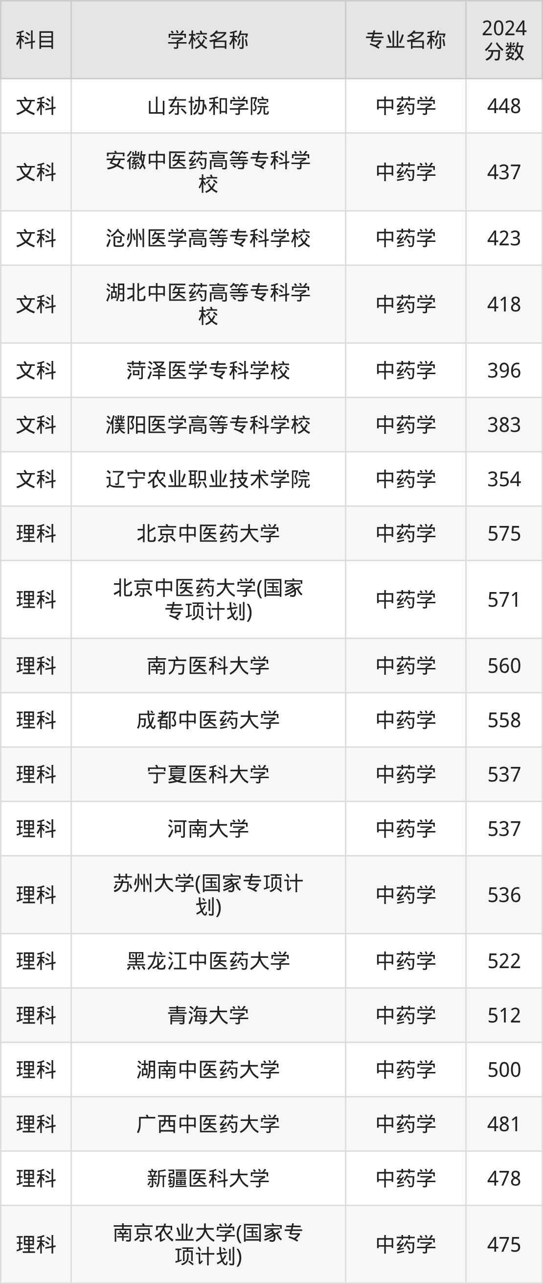 | 陕西中医药大学(地方 专项计划) | 中药学 | 477 |