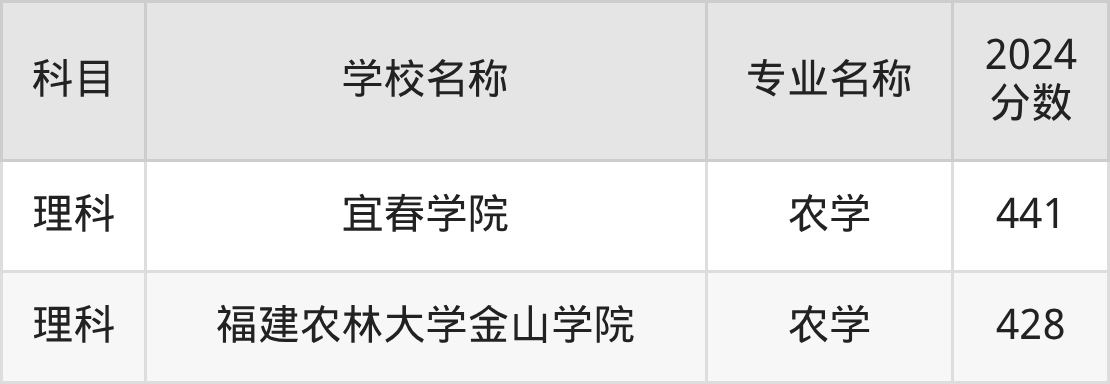 | 云南农业大学(普洱校 区) | 农学(农林类) | 458 |