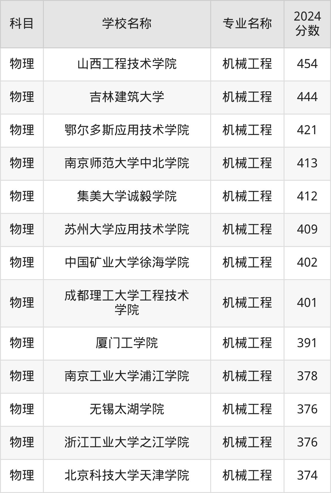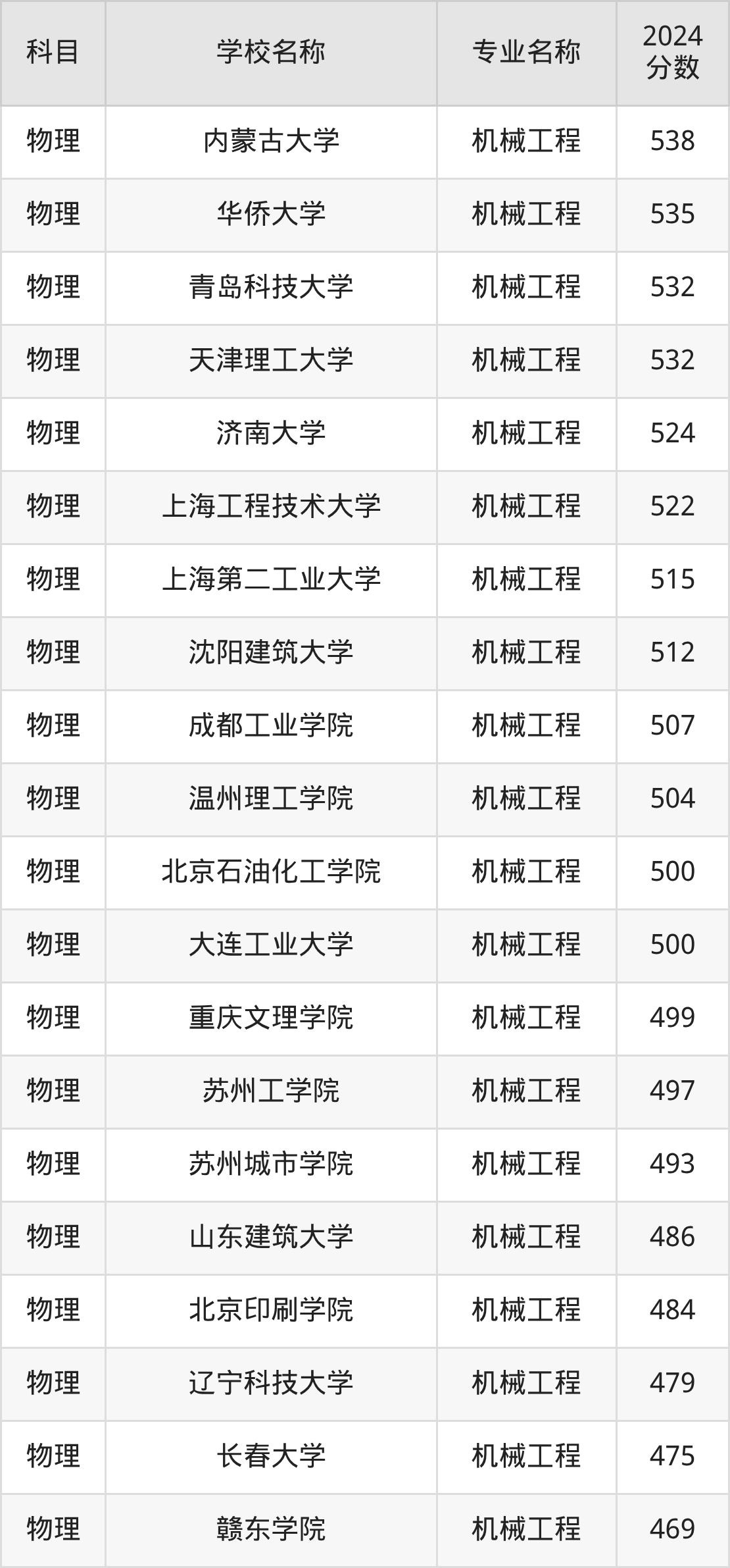 | 学校名称 | 专业名称 | 2024 分数 |