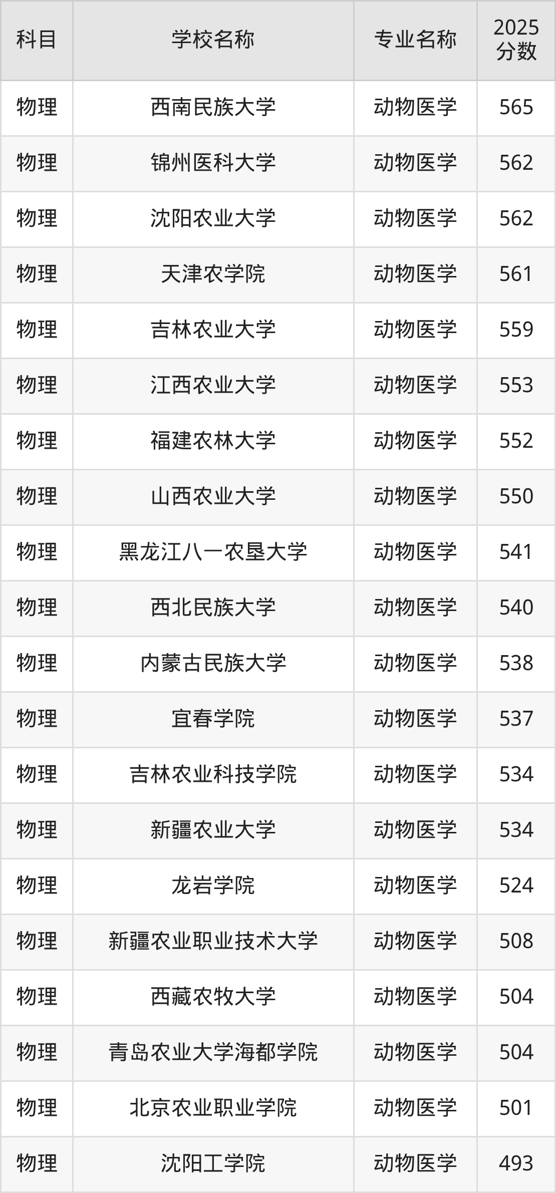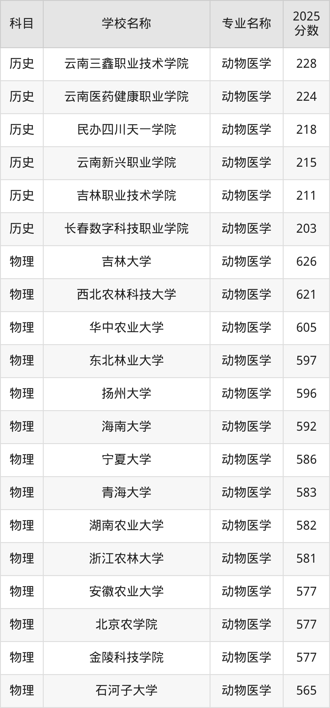 下文将为大家展示河北省大学动物医学专业2025年在河北高考的最低录取分数线!