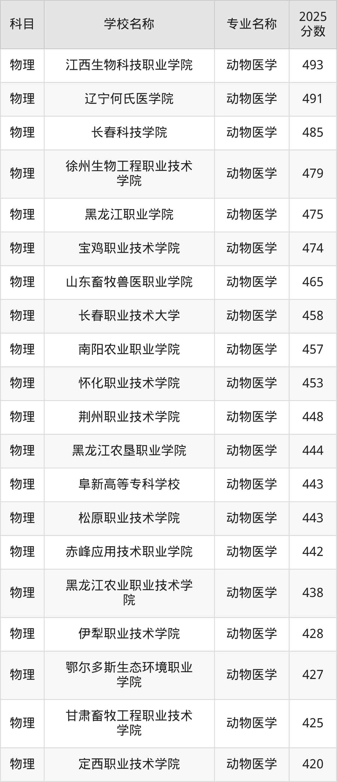 | 沧州职业技术学院 | 动物医学 | 452 |