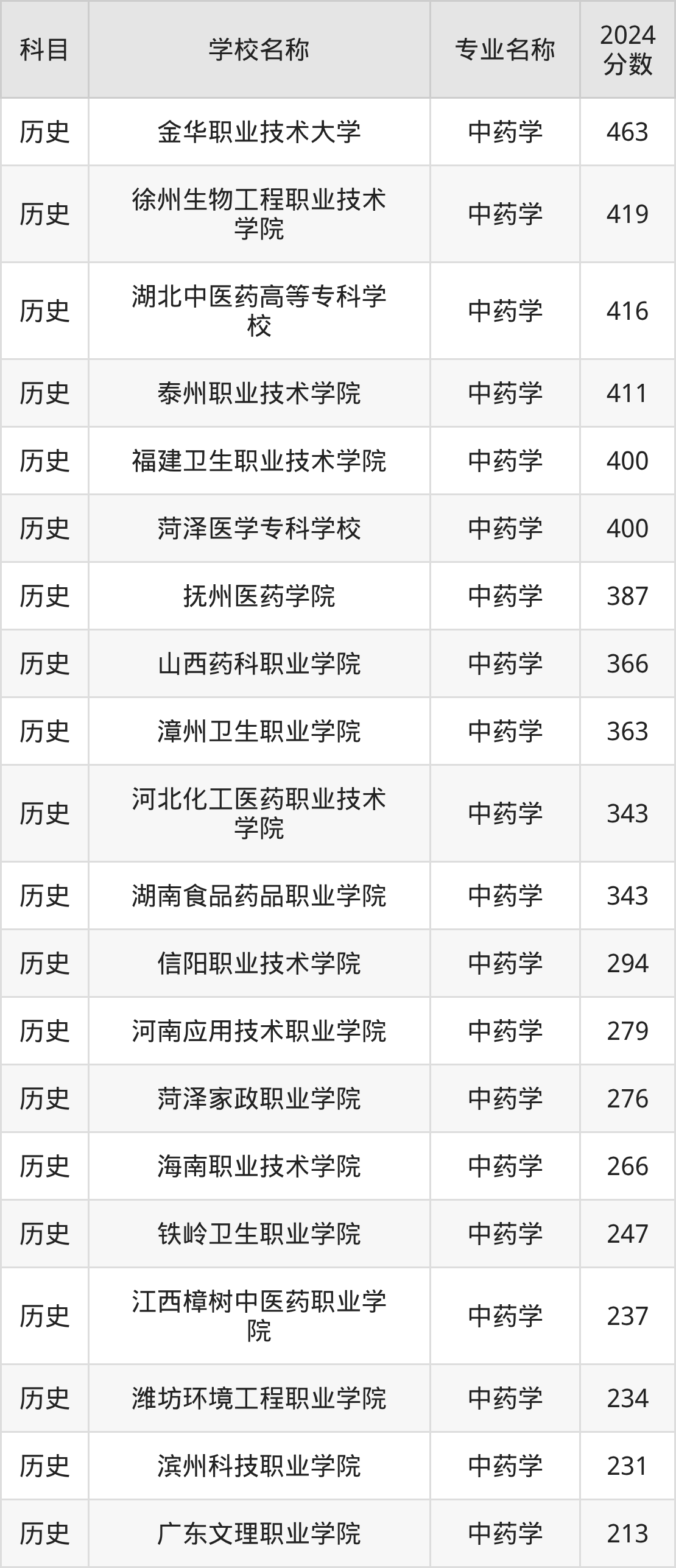 | 安庆医药高等专科学校 | 中药学 | 422 |