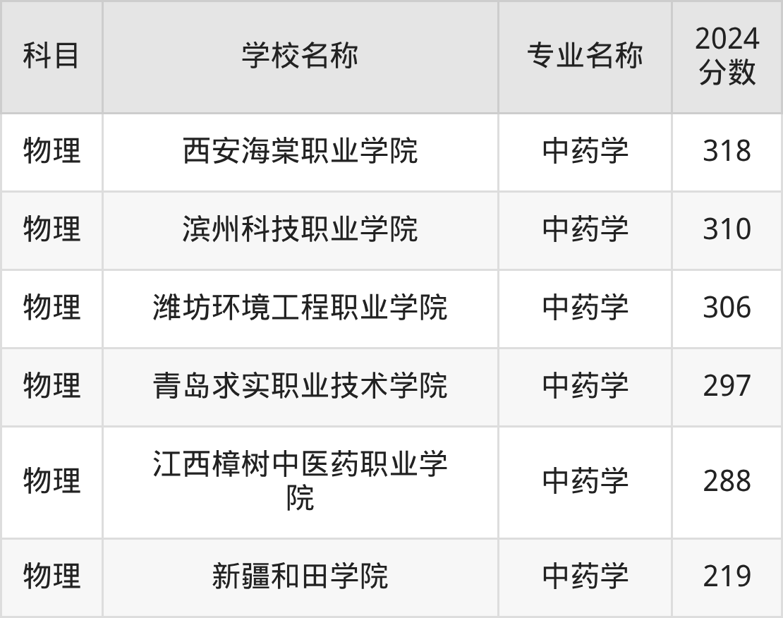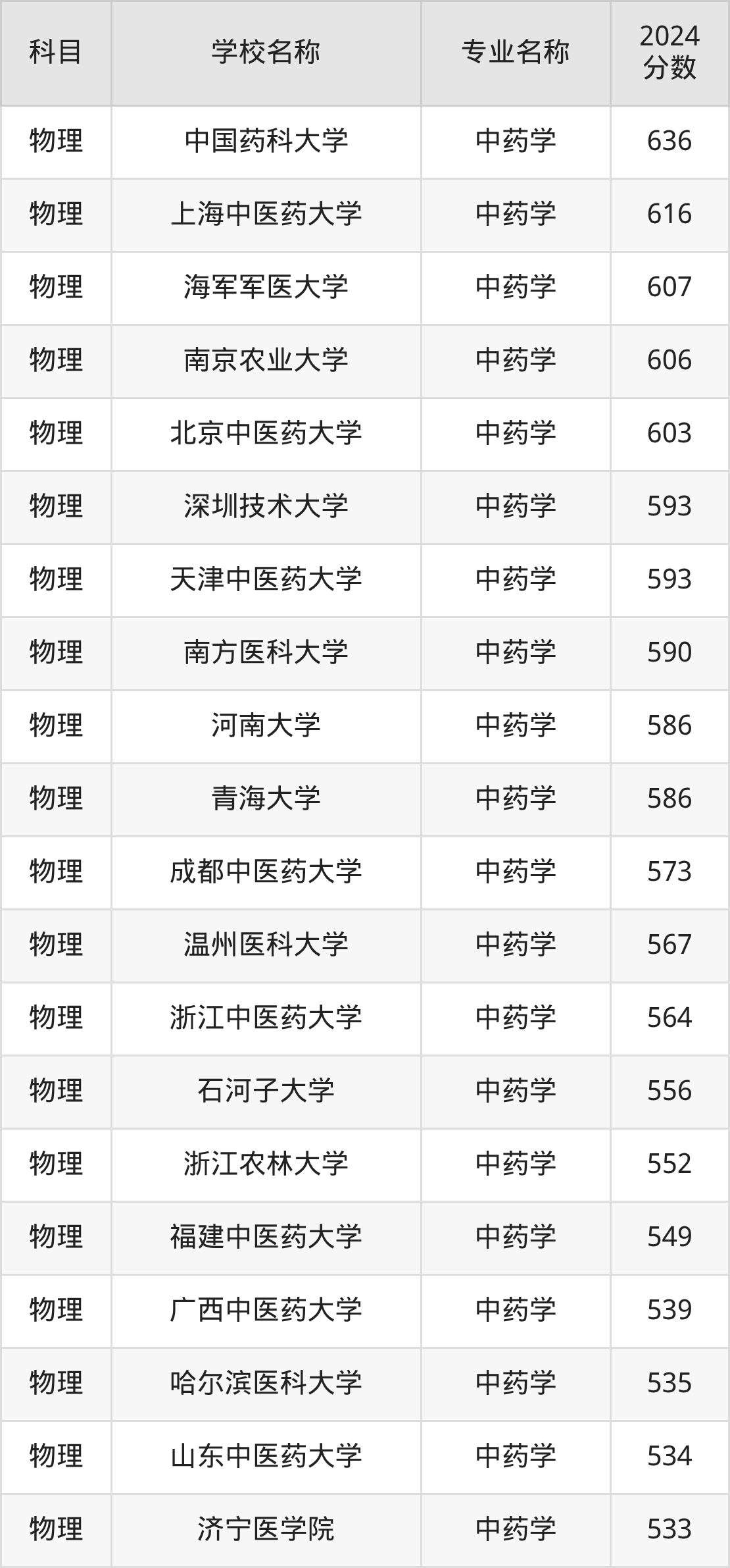 安徽高考物理组:中药学专业的最低分是283分~534分