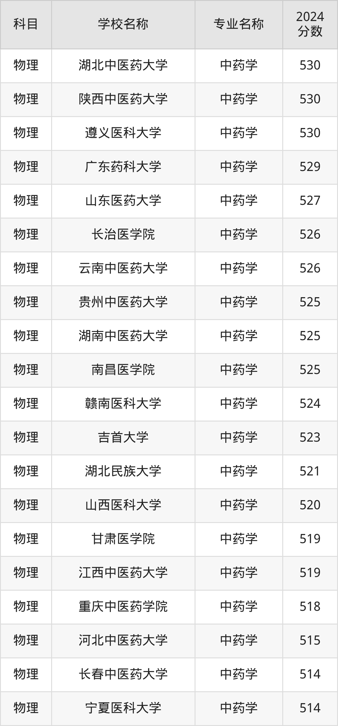 下文将为大家展示安徽省大学中药学专业2024年在安徽高考的最低录取分数线!