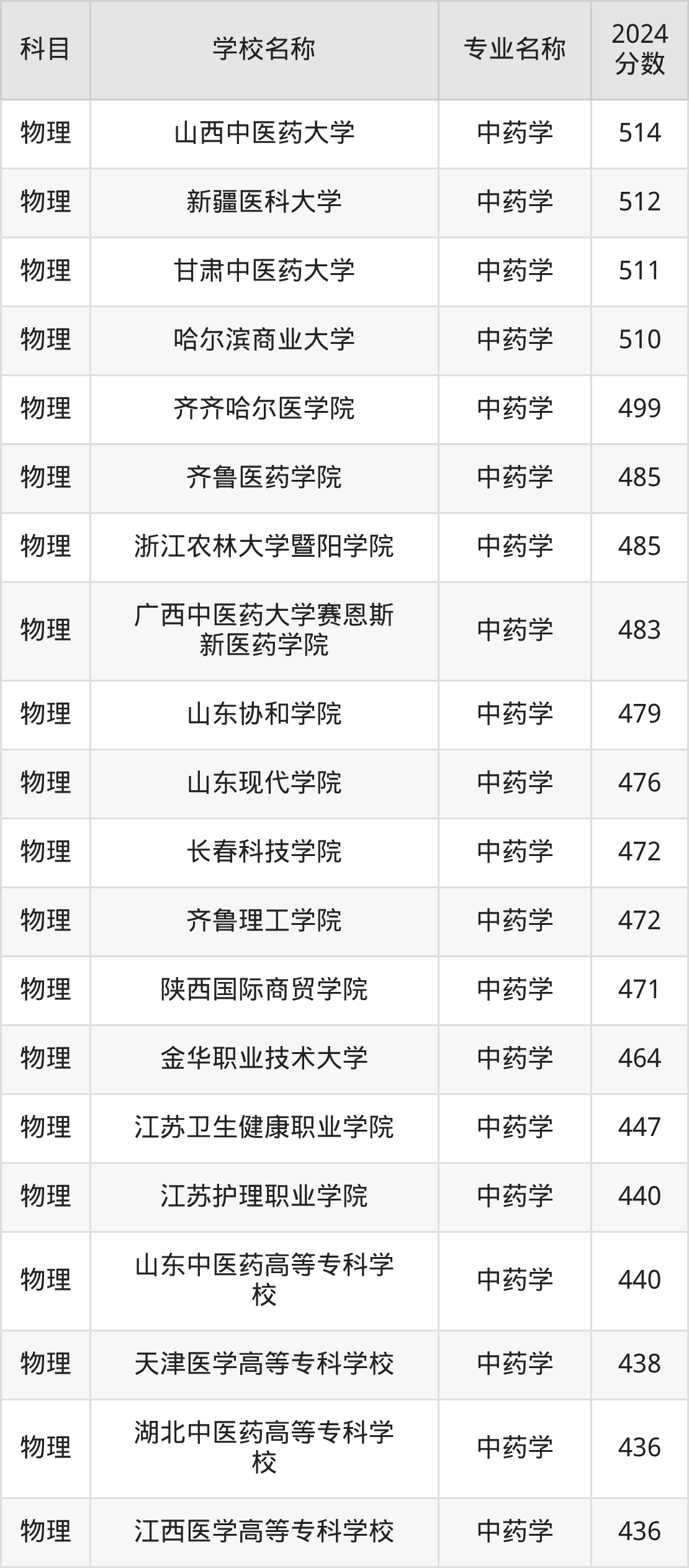圆梦小编根据安徽2024年高考物理组专业分,将开设了中药学专业且位于安徽省内的大学按照“录取分”从高到低排序,得出了以上榜单。