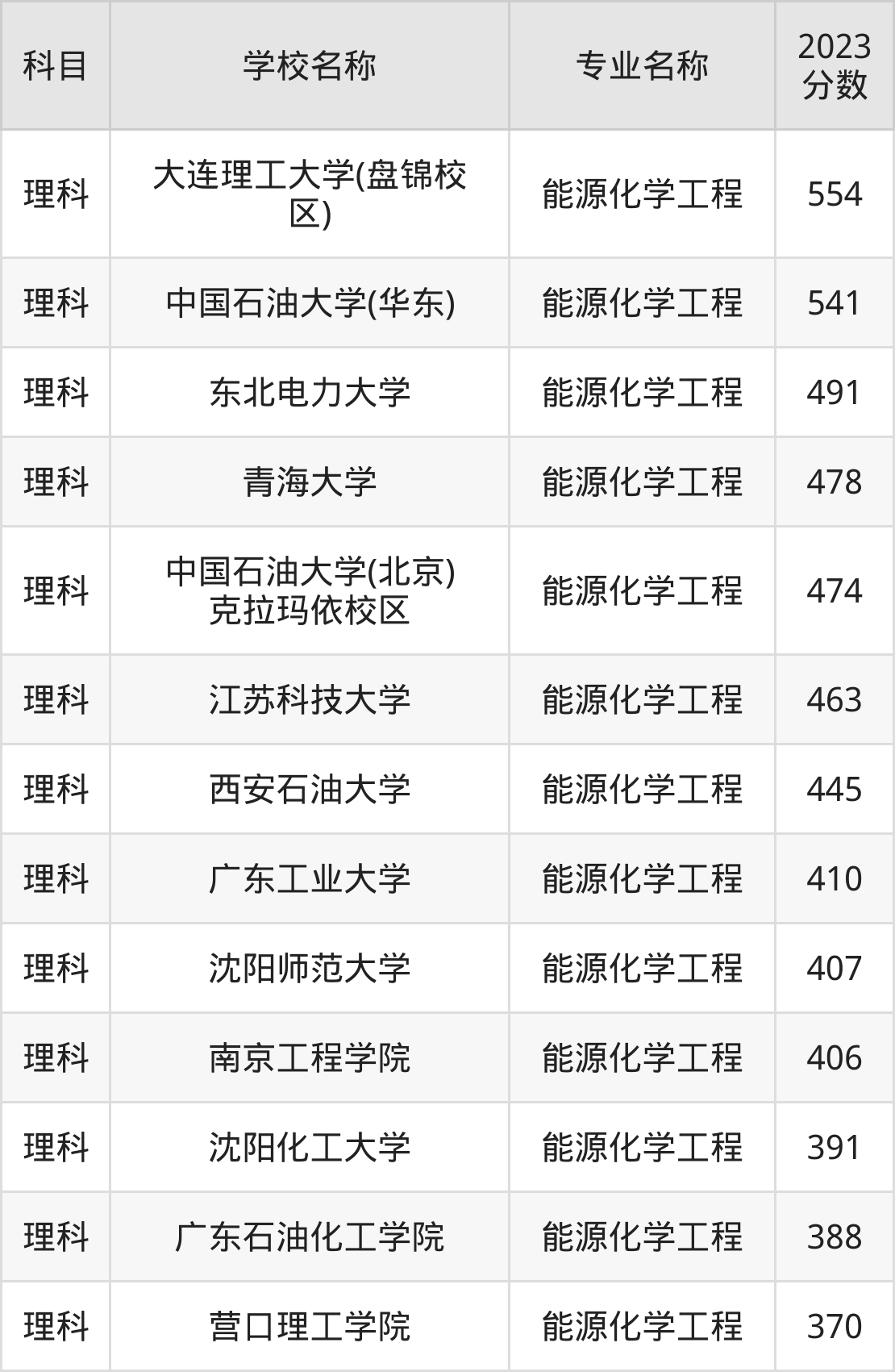 通过上文大家可以知晓,在黑龙江省内招能源化学工程专业的院校数量较少,所以下文将为2025届高考生继续展示:省外大学的能源化学工程专业2023年在黑龙江高考的录取情况,包含大连理工大学(盘锦校区)、中国石油大学(华东)、东北电力大学、青海大学、中国石油大学(北京)克拉玛依校区。